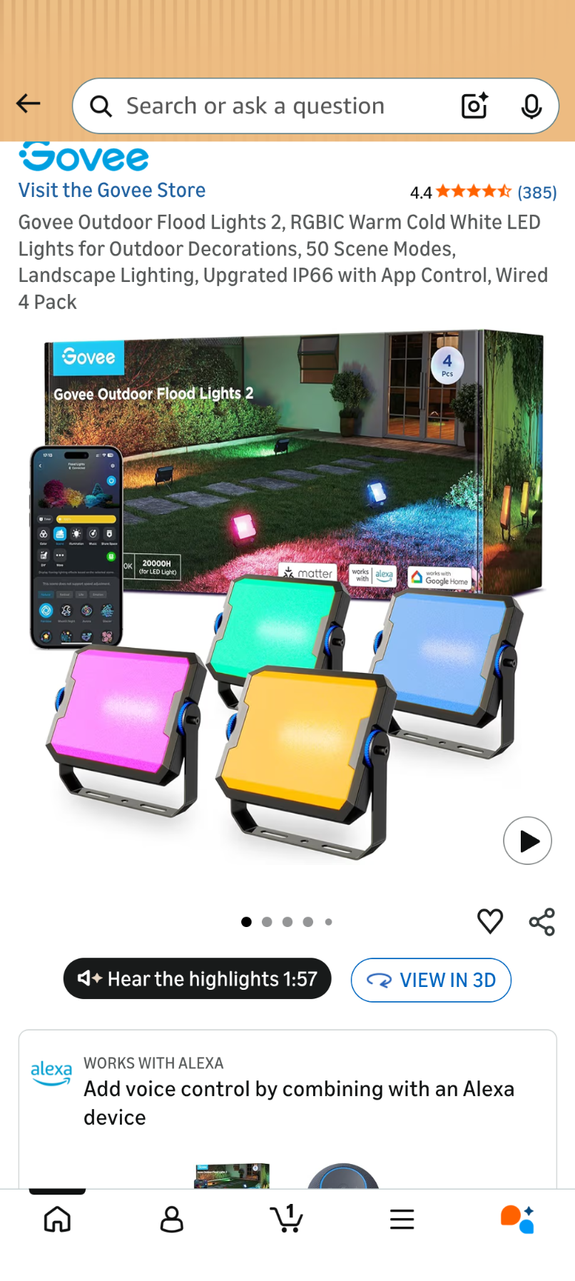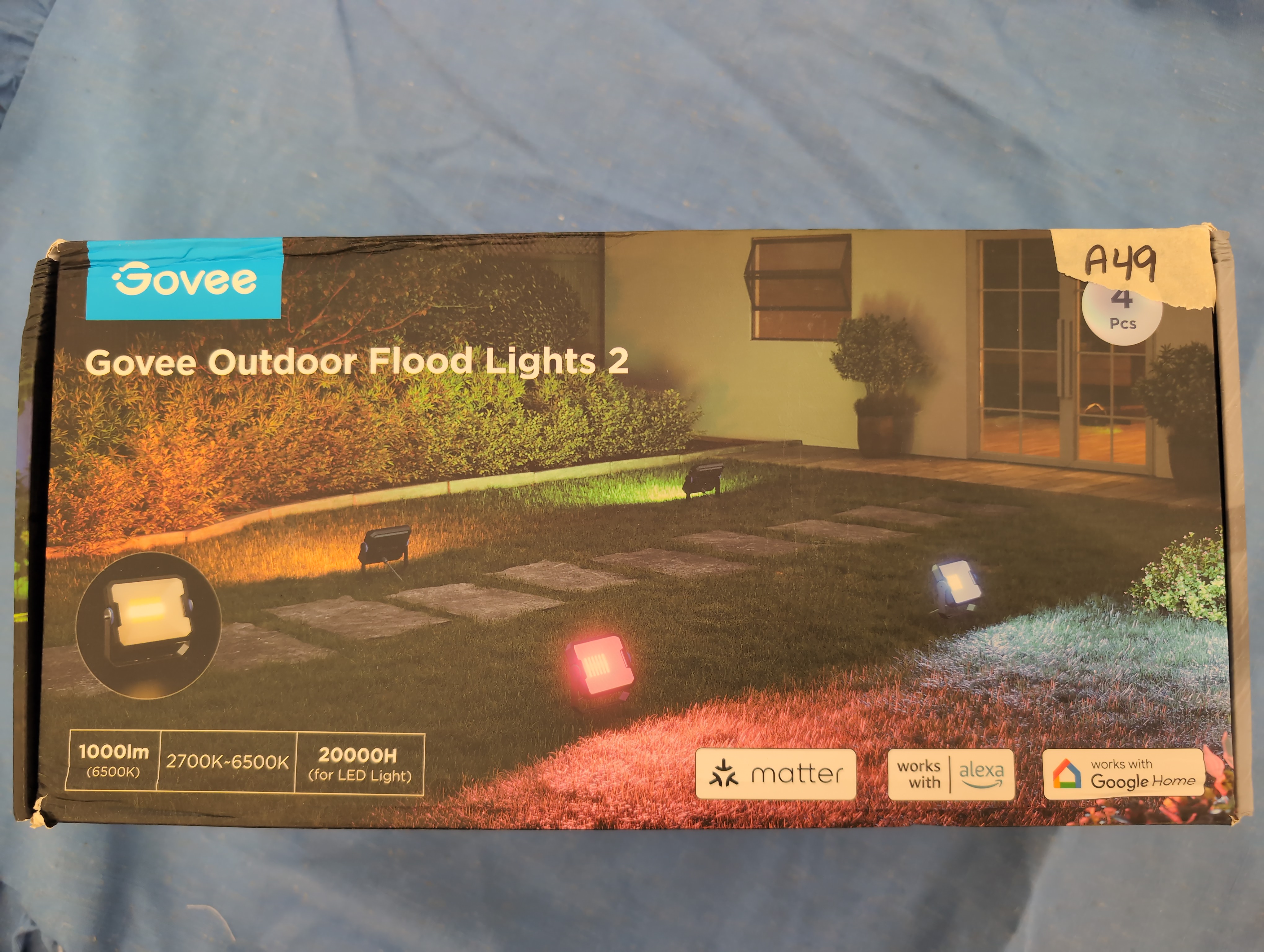 A49 Govee Outdoor Flood Lights 2, RGBIC Warm Cold White LED Lights for Outdoor Decorations, 50 Scene Modes, Landscape Lighting, Upgrated IP66 with App Control, Wired 4 Pack