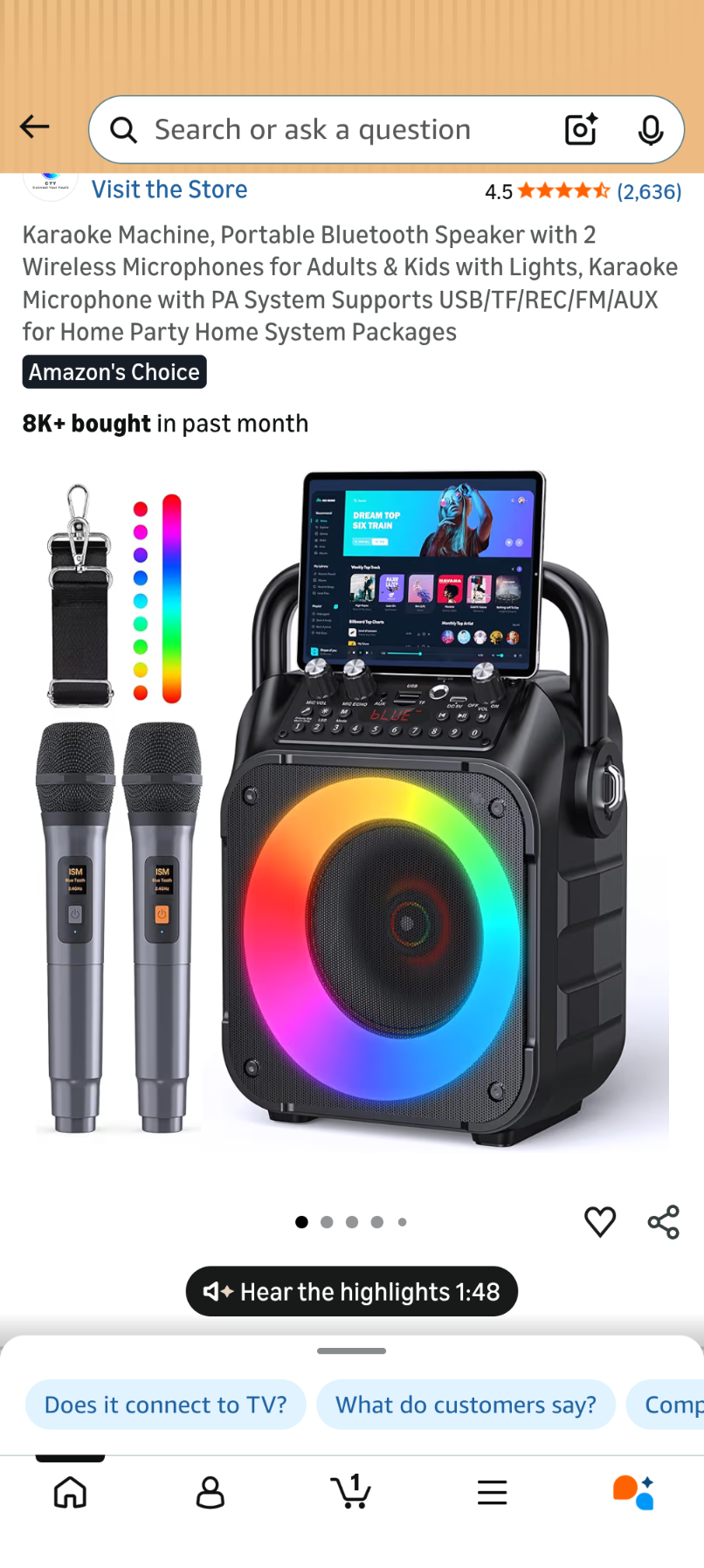 A54 Karaoke Machine, Portable Bluetooth Speaker with 2 Wireless Microphones for Adults & Kids with Lights, Karaoke Microphone with PA System Supports USB/TF/REC/FM/AUX for Home Party Home System Packages