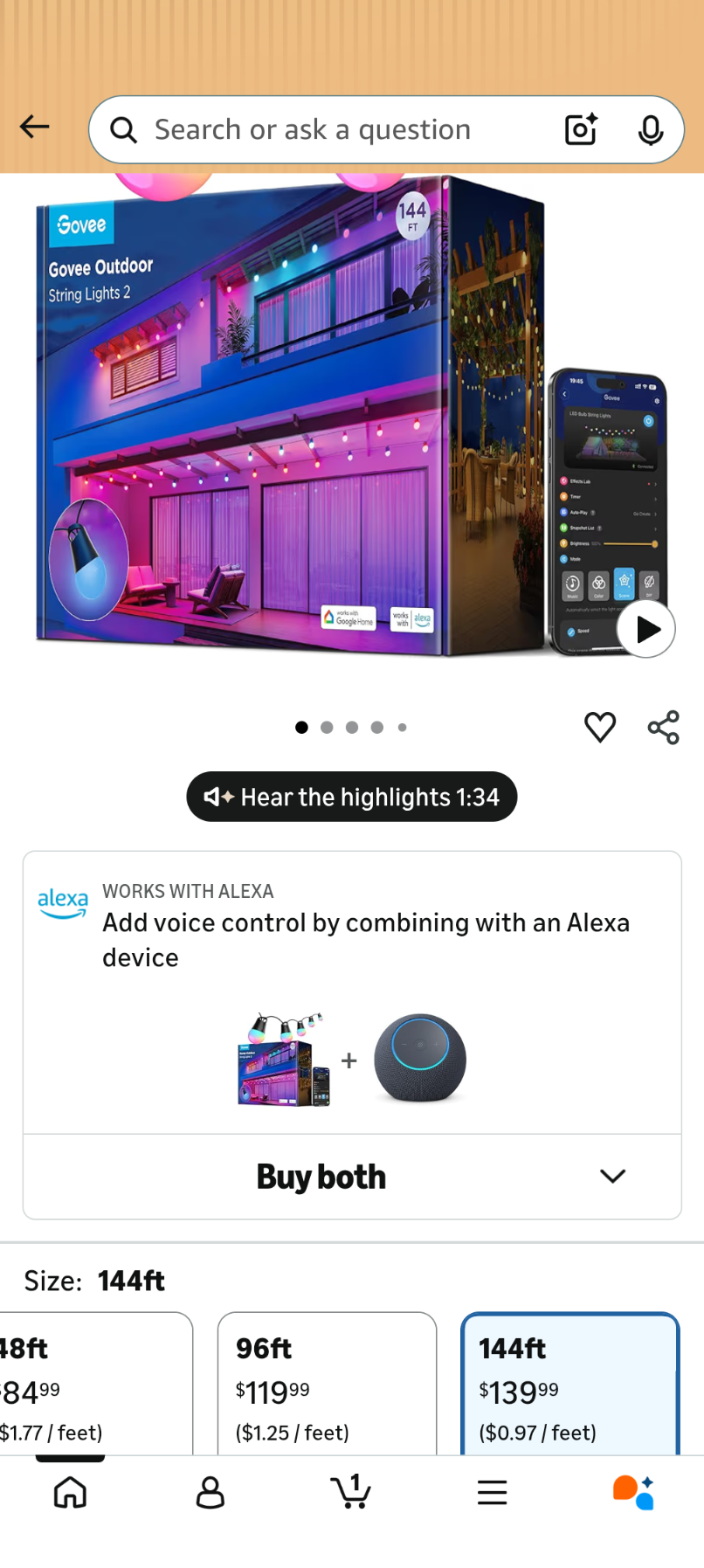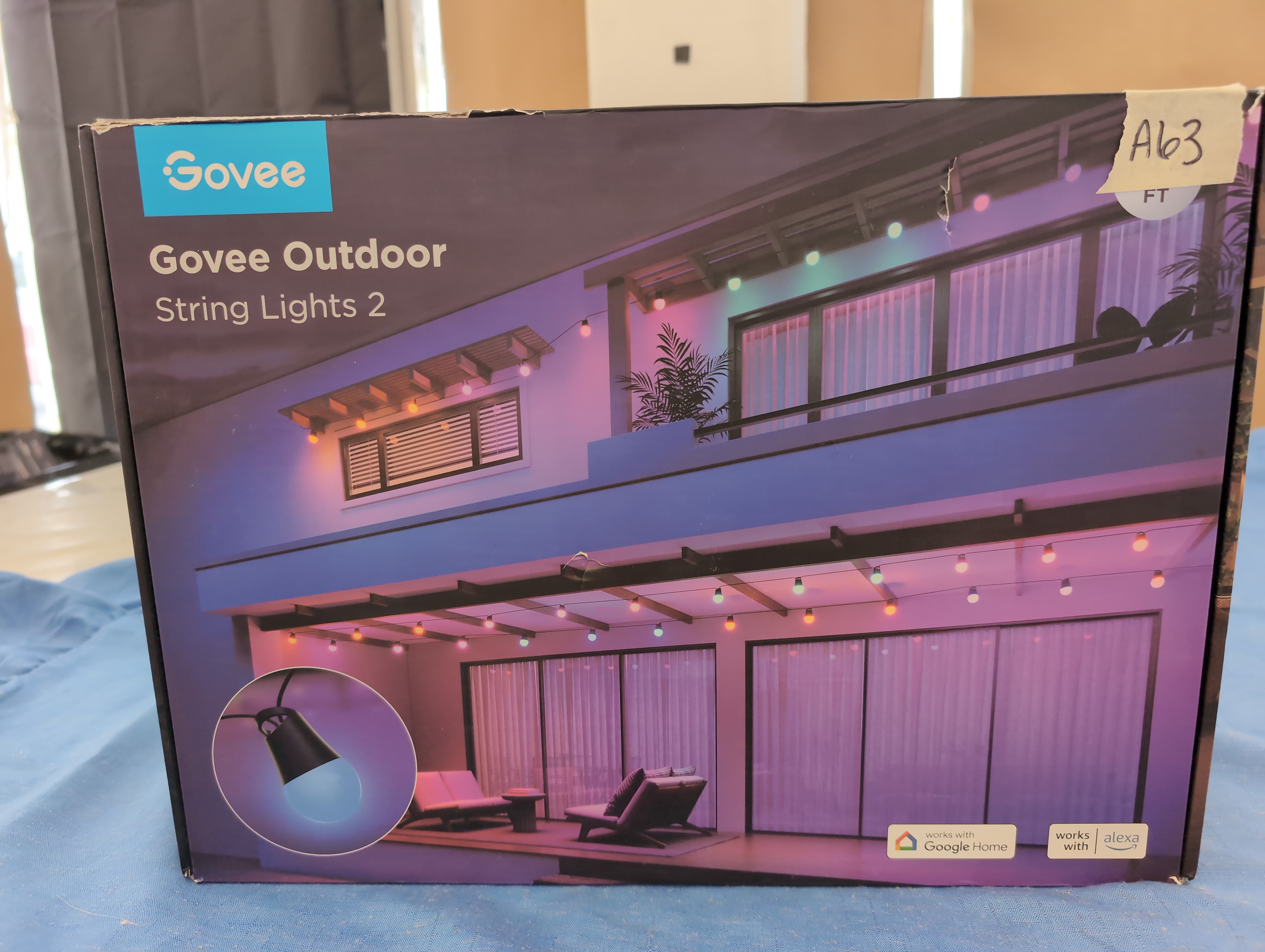 A63 Govee Smart Outdoor String Lights 2, 144ft Outdoor Lights with Dimmable Warm White LED Bulbs, 47 Scene Modes for Patio, Backyard, Balcony, IP65 Waterproof, Works with Alexa, App Control