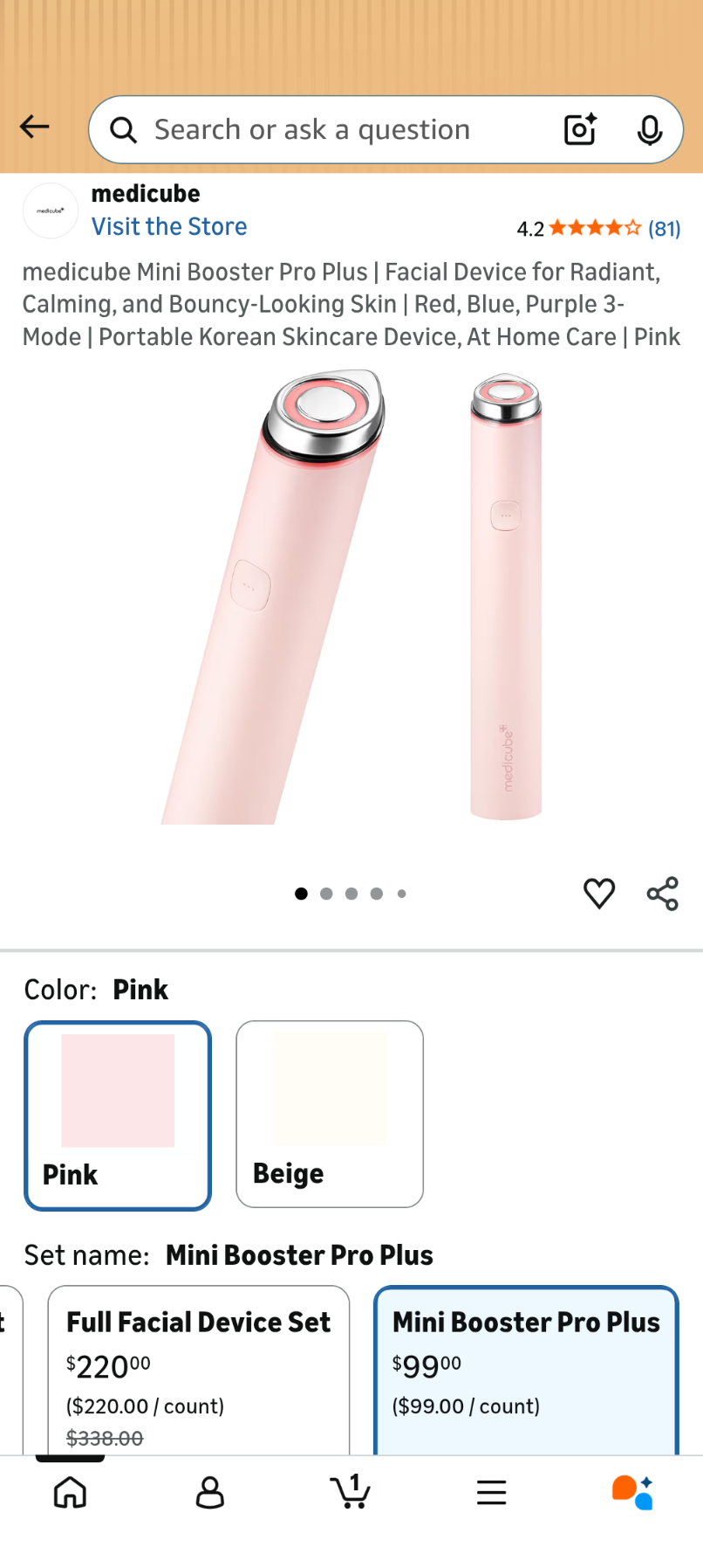 A67 medicube Mini Booster Pro Plus | Facial Device for Radiant, Calming, and Bouncy-Looking Skin | Red, Blue, Purple 3-Mode | Portable Korean Skincare Device, At Home Care | Pink