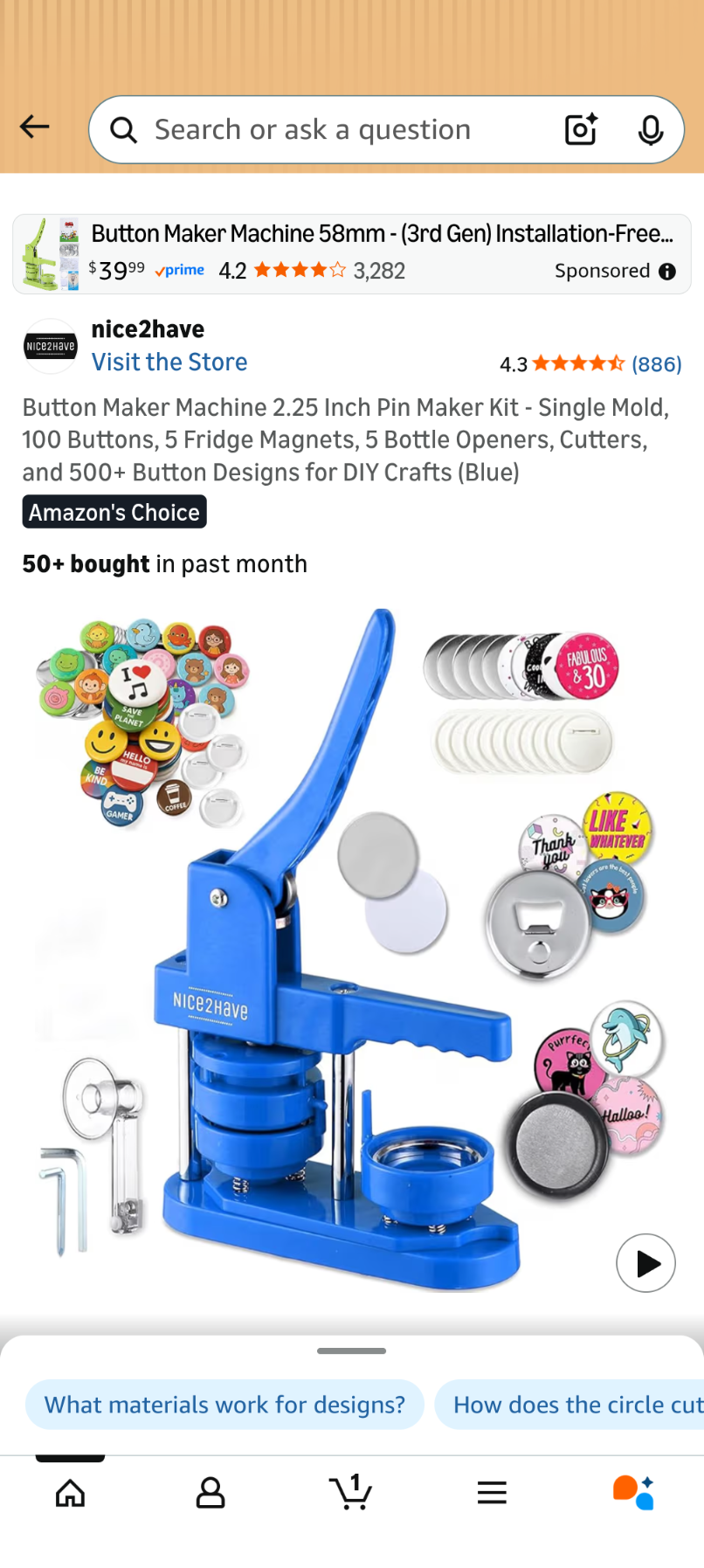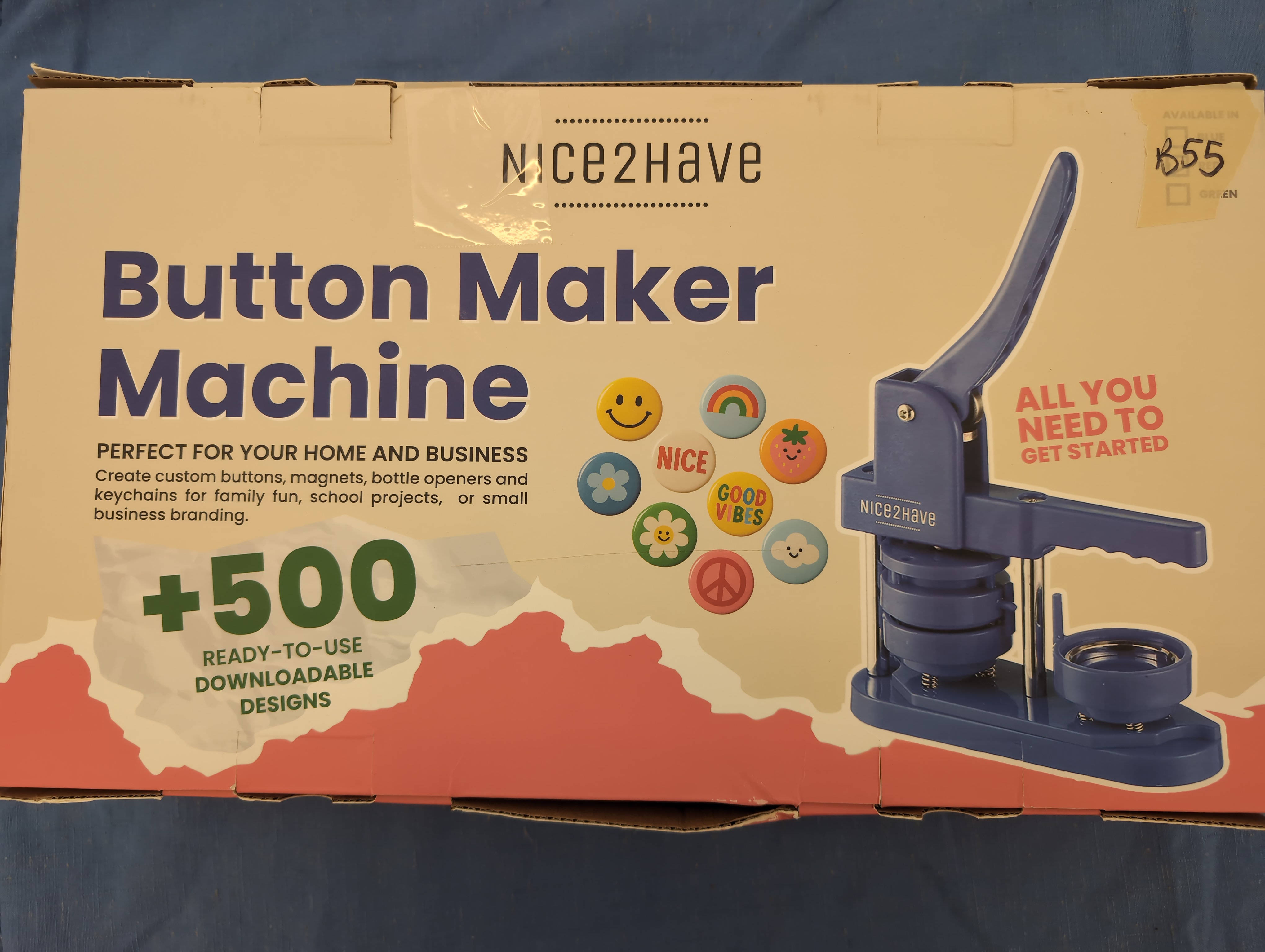 B55 Button Maker Machine 2.25 Inch Pin Maker Kit - Single Mold, 100 Buttons, 5 Fridge Magnets, 5 Bottle Openers, Cutters, and 500+ Button Designs for DIY Crafts (Blue)