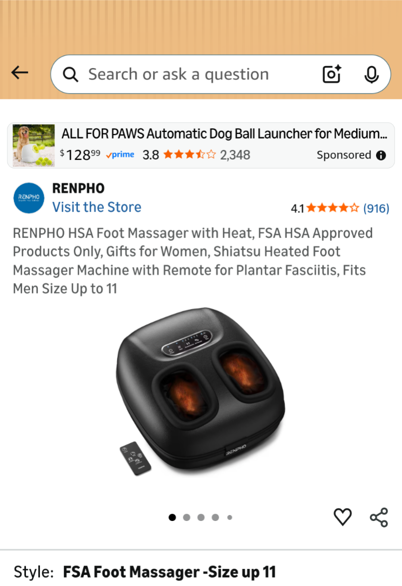 B66 RENPHO HSA Foot Massager with Heat, FSA HSA Approved Products Only, Gifts for Women, Shiatsu Heated Foot Massager Machine with Remote for Plantar Fasciitis, Fits Men Size Up to 11