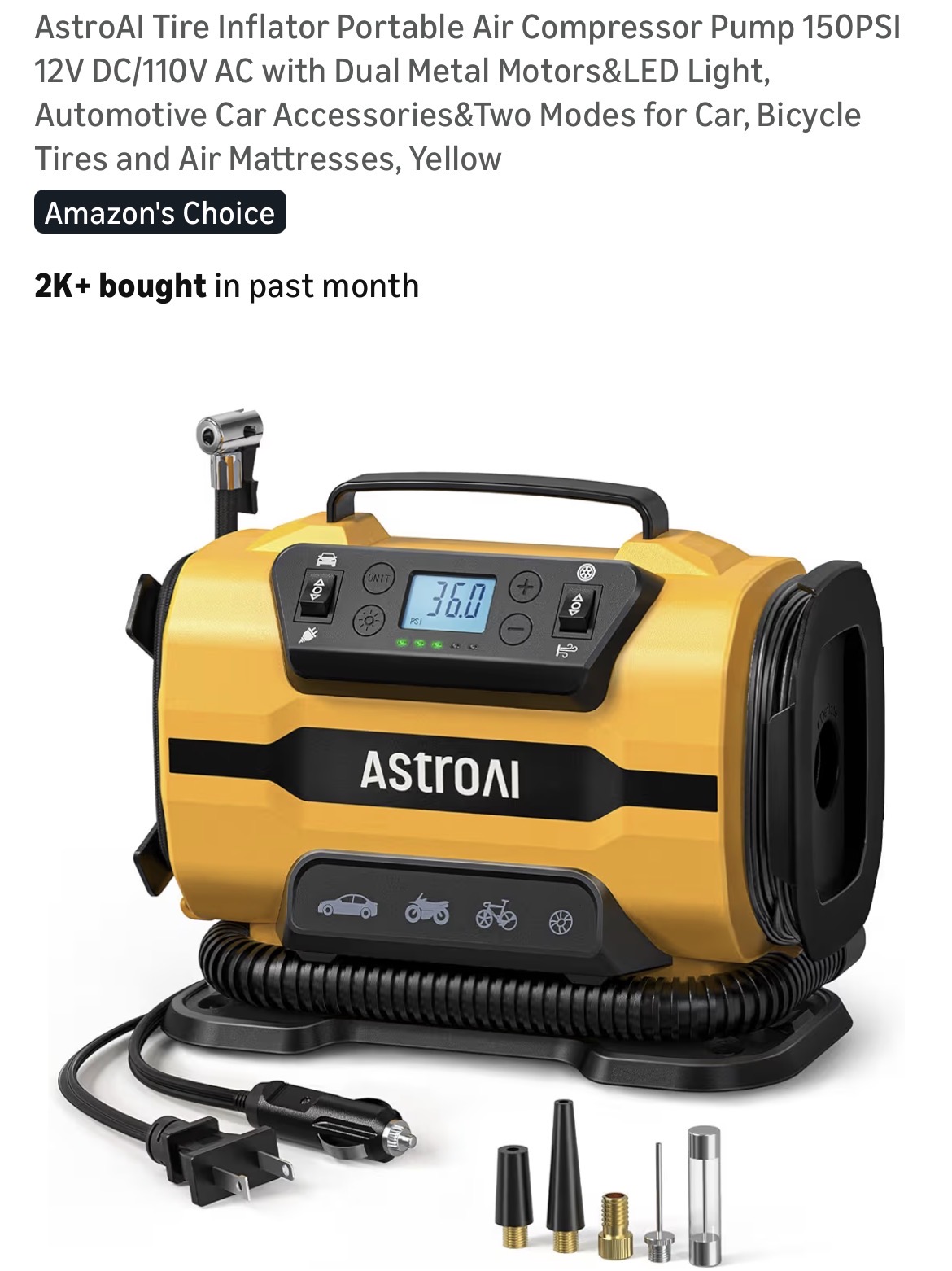 AstroAI Tire Inflator Portable Air Compressor Pump #D15