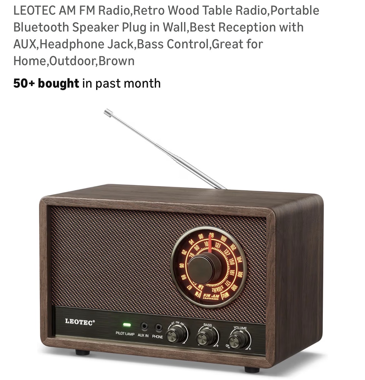 LEOTEC AM FM Radio,Retro Wood Table Radio #D8