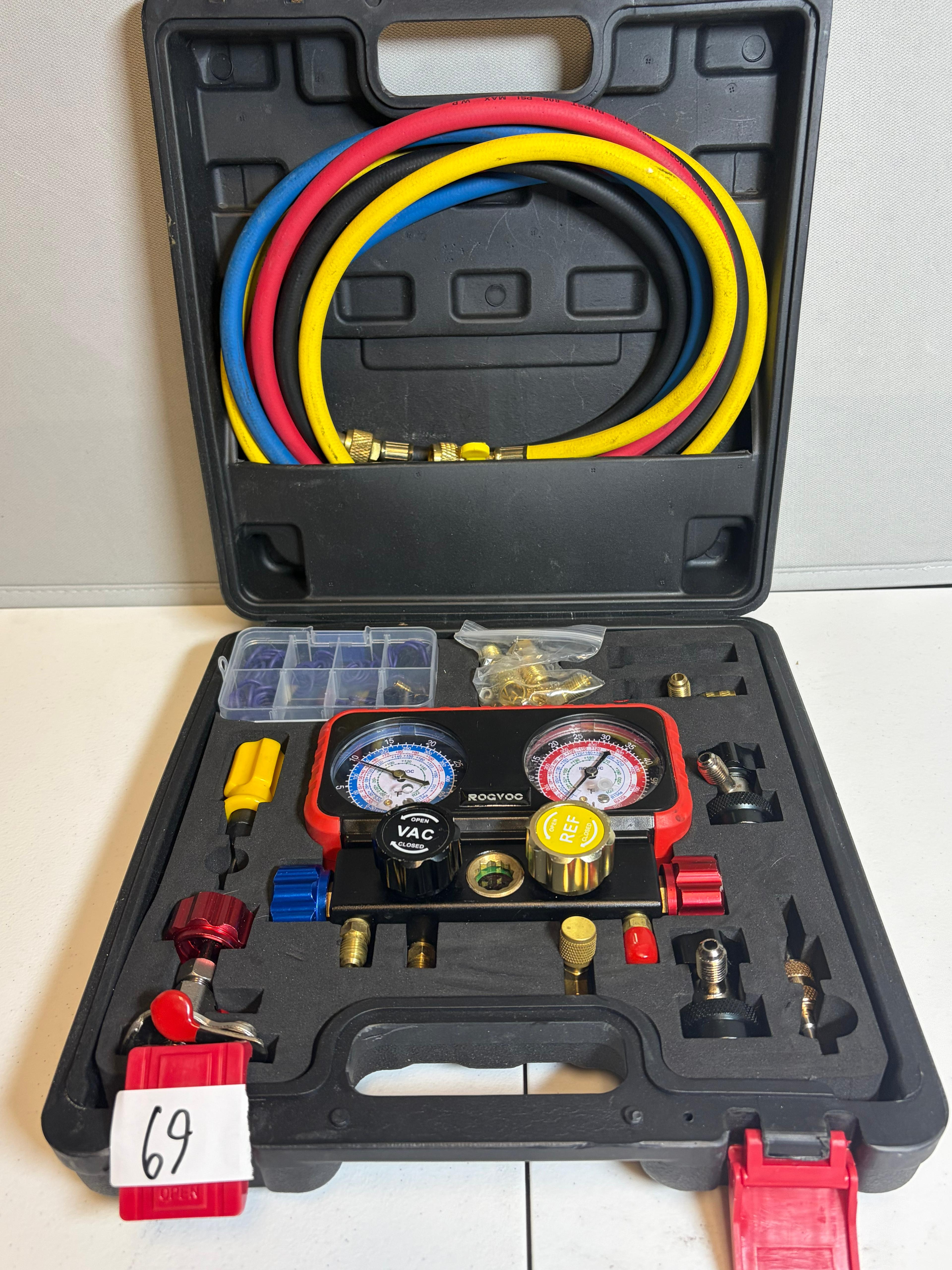 R1234YF R134A AC Gauge Set 4 Valve Manifold HVAC Gauges with Hoses Compatible #D69