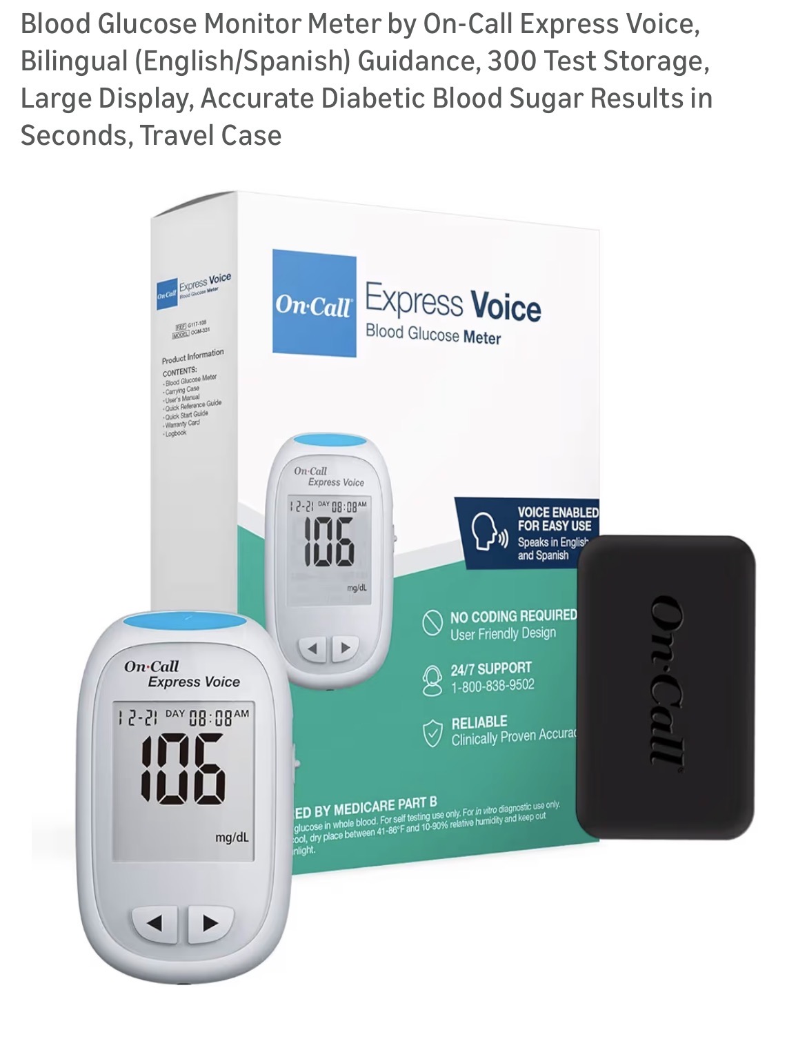 Blood Glucose Monitor Meter by On-Call Express Voice #D71
