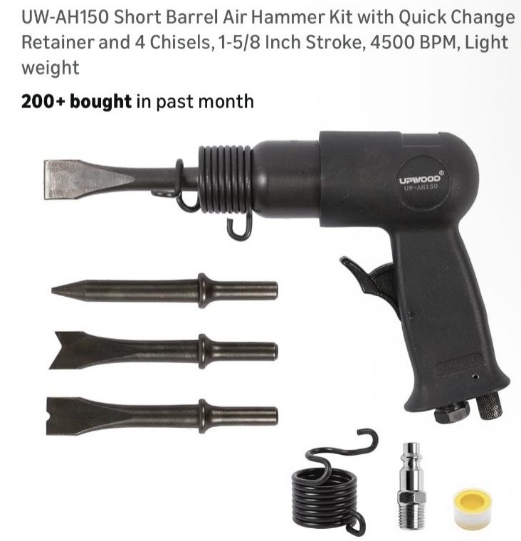 UW-AH150 Short Barrel Air Hammer Kit with Quick Change Retainer and 4 Chisels #C53