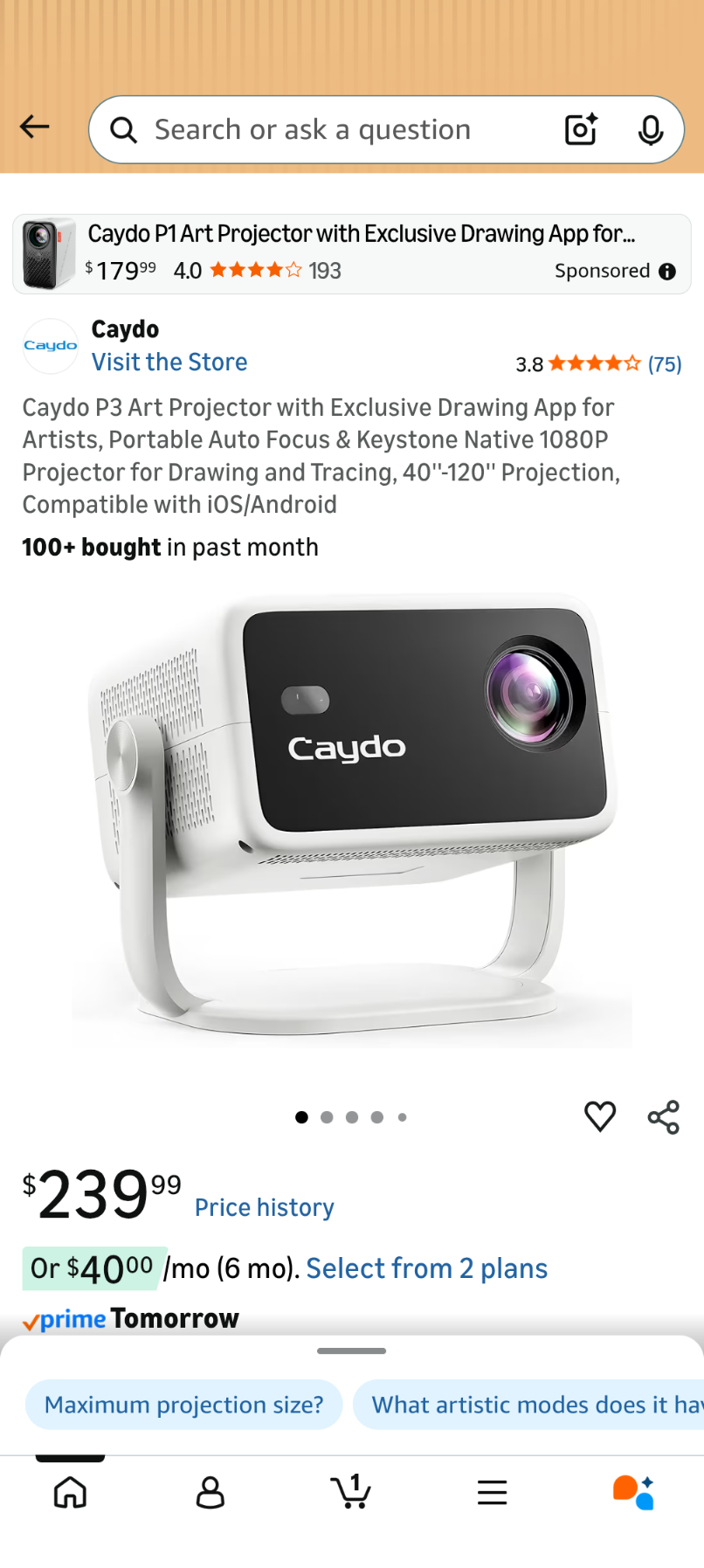 C43 Caydo P3 Art Projector with Exclusive Drawing App for Artists, Portable Auto Focus & Keystone Native 1080P Projector for Drawing and Tracing, 40''-120'' Projection, Compatible with iOS/Android