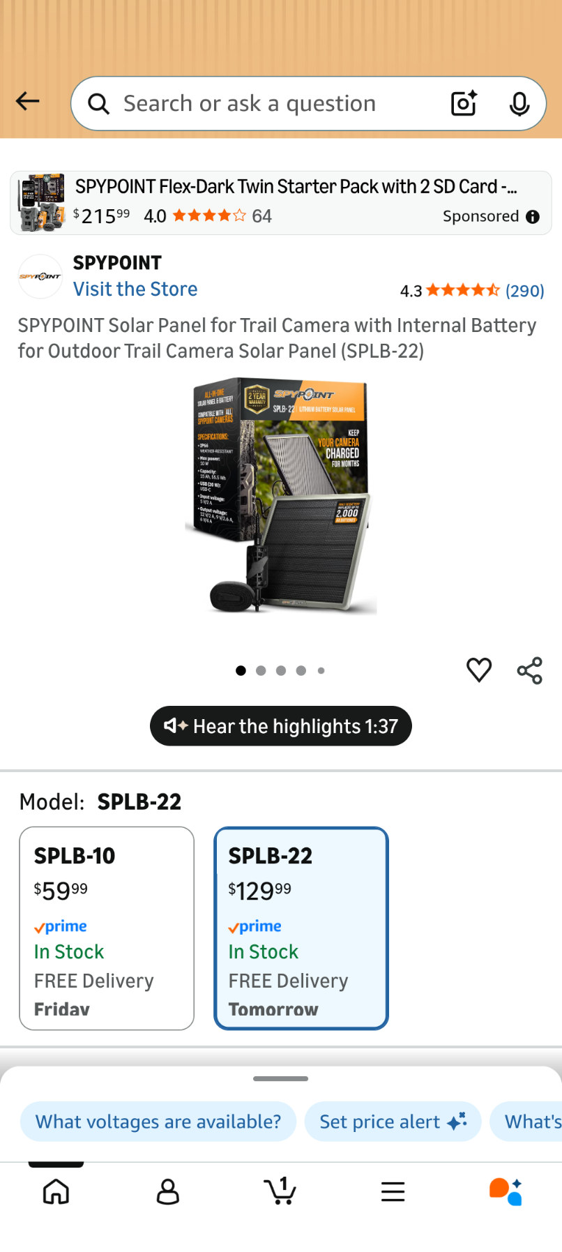 C45 SPYPOINT Solar Panel for Trail Camera with Internal Battery for Outdoor Trail Camera Solar Panel (SPLB-22)