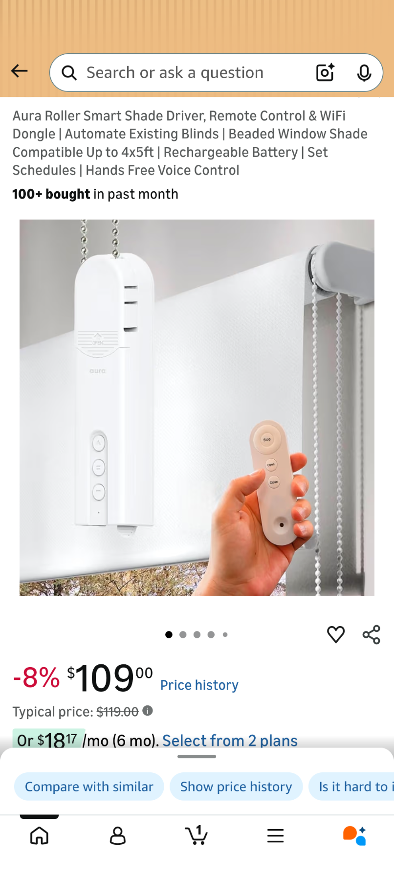 C48 Aura Roller Smart Shade Driver, Remote Control & WiFi Dongle | Automate Existing Blinds | Beaded Window Shade Compatible Up to 4x5ft | Rechargeable Battery | Set Schedules | Hands Free Voice Control