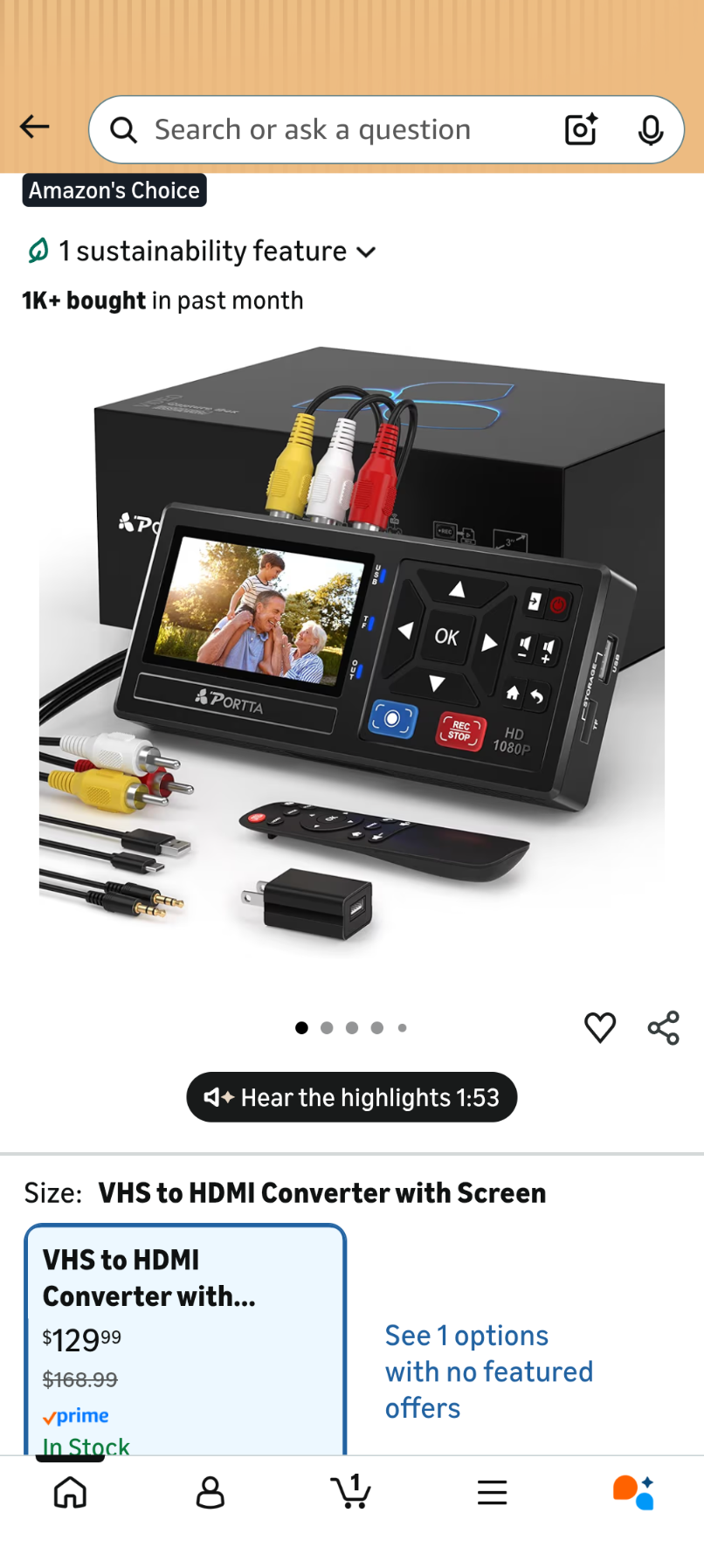 C54 Portta VHS to Digital Converter, Video to Digital Recorder with Remote, Compatible with VHS, VCR, DVR, DVD, Hi8, Mini DV, Gaming Consoles (VCR, VHS/DVD Player, Camcorder Required)