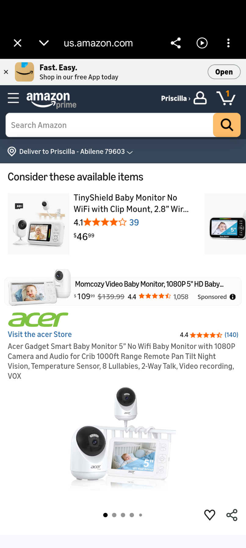 C57 Acer Gadget Smart Baby Monitor 5” No Wifi Baby Monitor with 1080P Camera and Audio for Crib 1000ft Range Remote Pan Tilt Night Vision, Temperature Sensor, 8 Lullabies, 2-Way Talk, Video recording, VOX