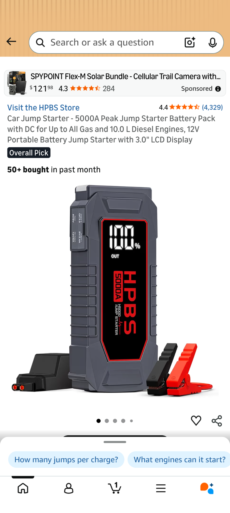 C58 Car Jump Starter - 5000A Peak Jump Starter Battery Pack with DC for Up to All Gas and 10.0 L Diesel Engines, 12V Portable Battery Jump Starter with 3.0" LCD Display
