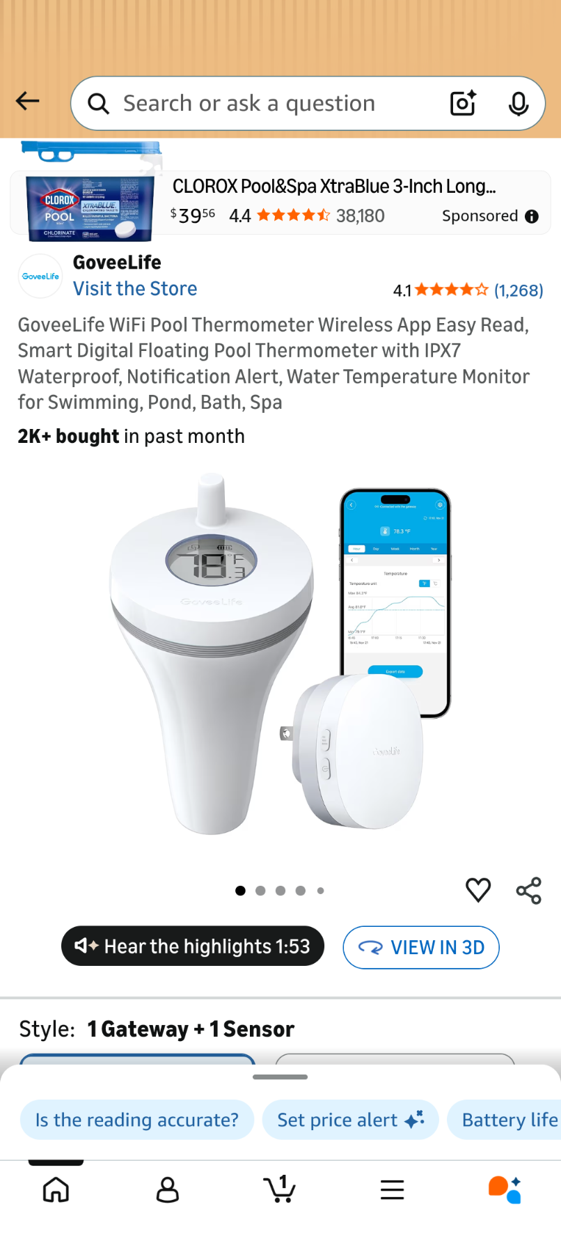 D1 GoveeLife WiFi Pool Thermometer Wireless App Easy Read, Smart Digital Floating Pool Thermometer with IPX7 Waterproof, Notification Alert, Water Temperature Monitor for Swimming, Pond, Bath, Spa