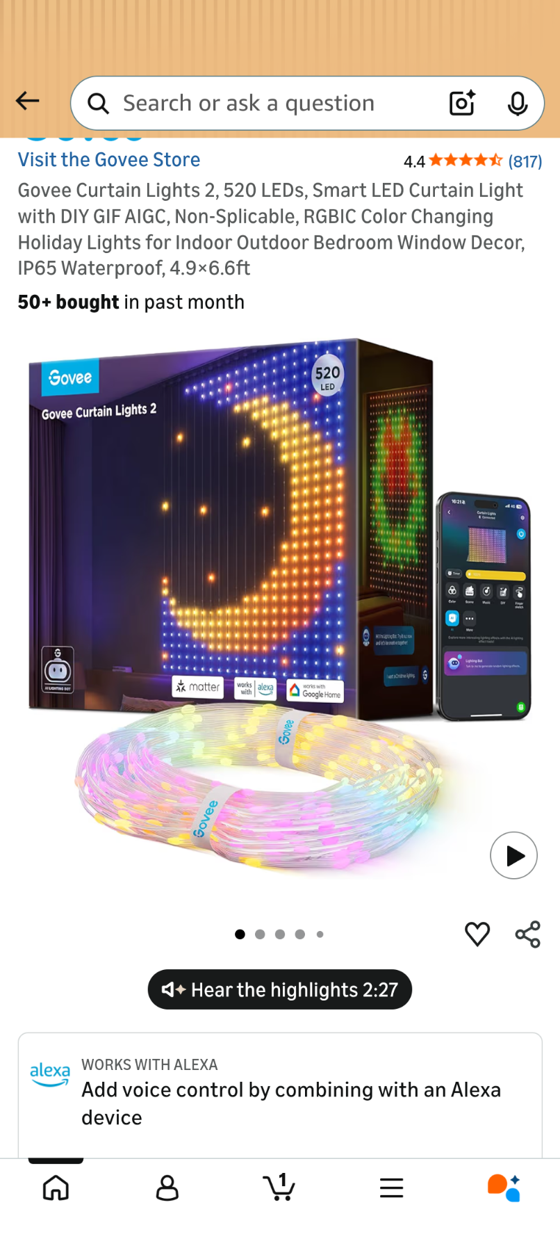 D8 Govee Curtain Lights 2, 520 LEDs, Smart LED Curtain Light with DIY GIF AIGC, Non-Splicable, RGBIC Color Changing Holiday Lights for Indoor Outdoor Bedroom Window Decor, IP65 Waterproof, 4.9×6.6ft