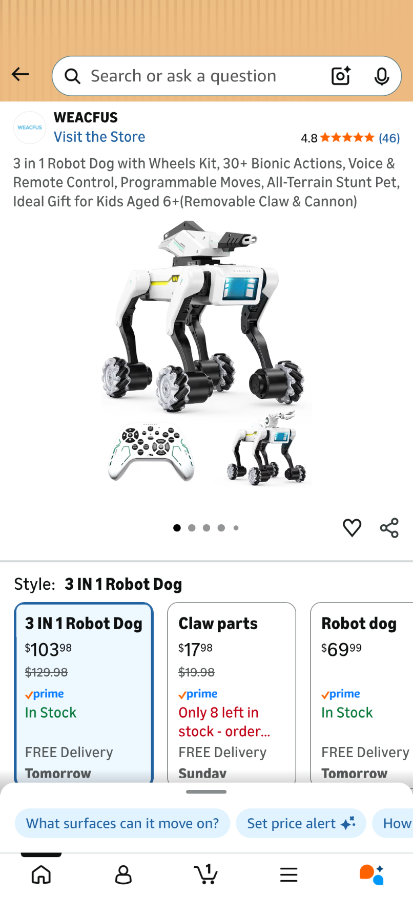 D12 3 in 1 Robot Dog with Wheels Kit, 30+ Bionic Actions, Voice & Remote Control, Programmable Moves, All-Terrain Stunt Pet, Ideal Gift for Kids Aged 6+(Removable Claw &