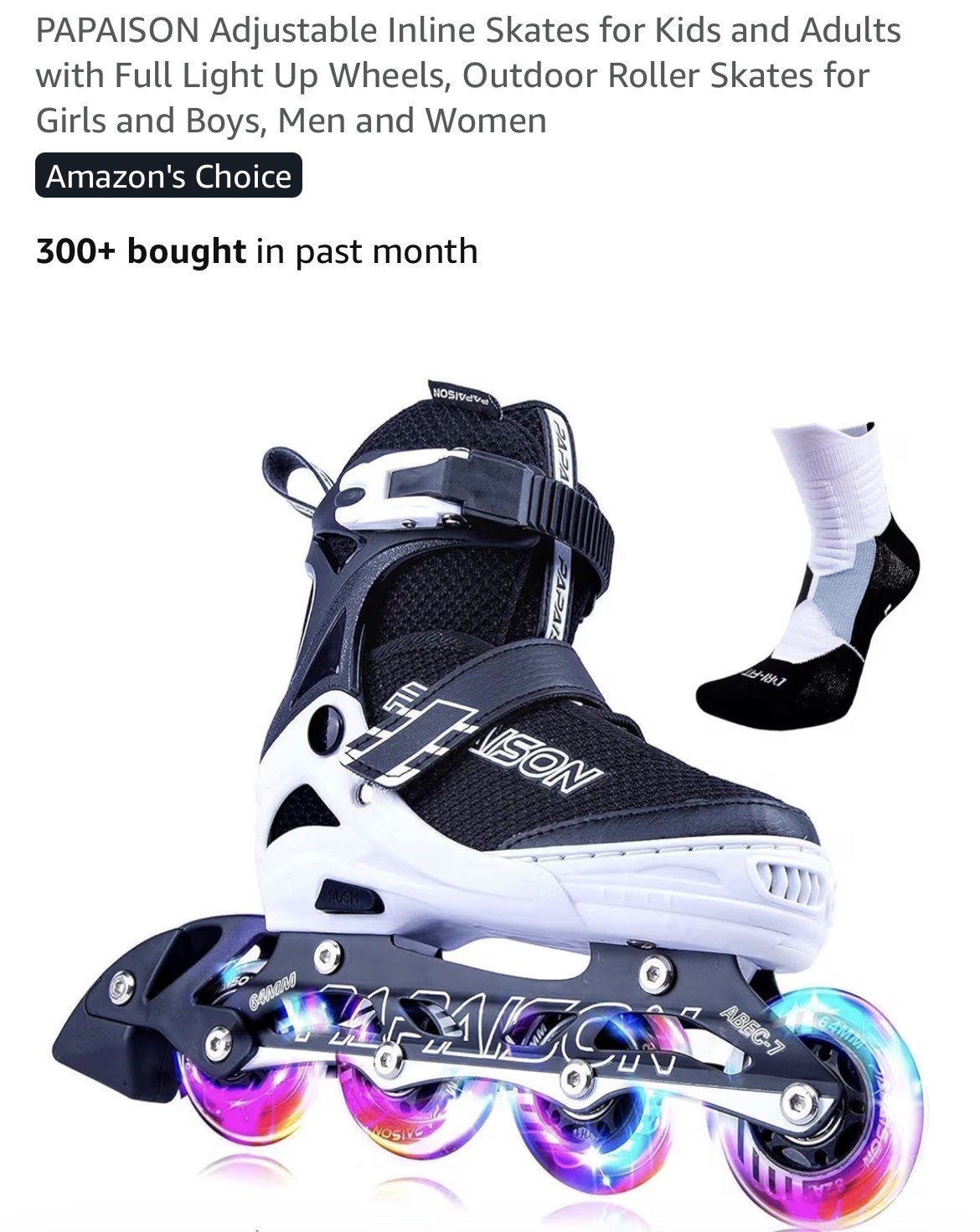 PAPAISON Adjustable Inline Skates for Kids and Adults with Full Light Up Wheels #D81