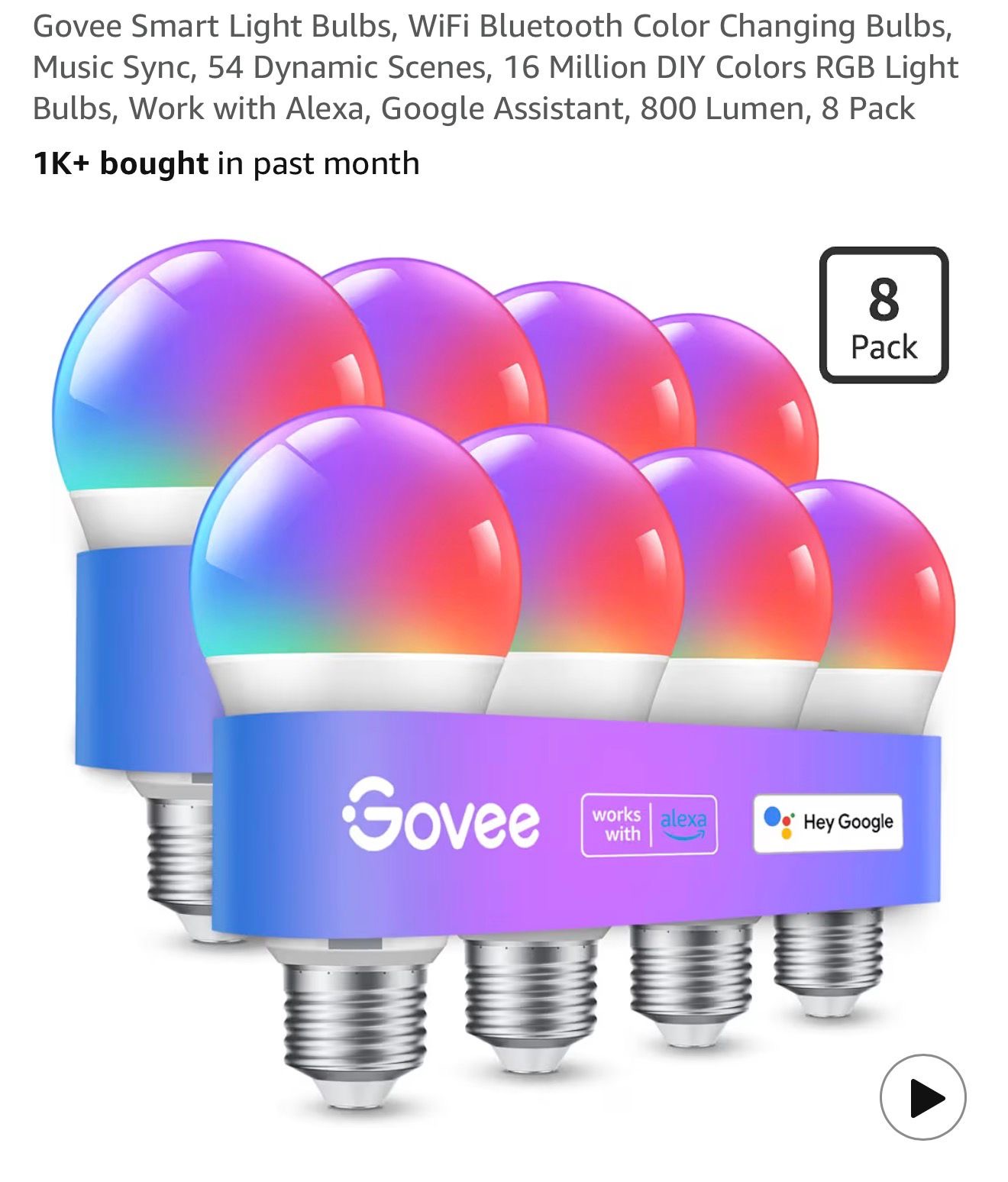 Govee Smart WiFi & Bluetooth Light Bulb 8-pack. (Q14)