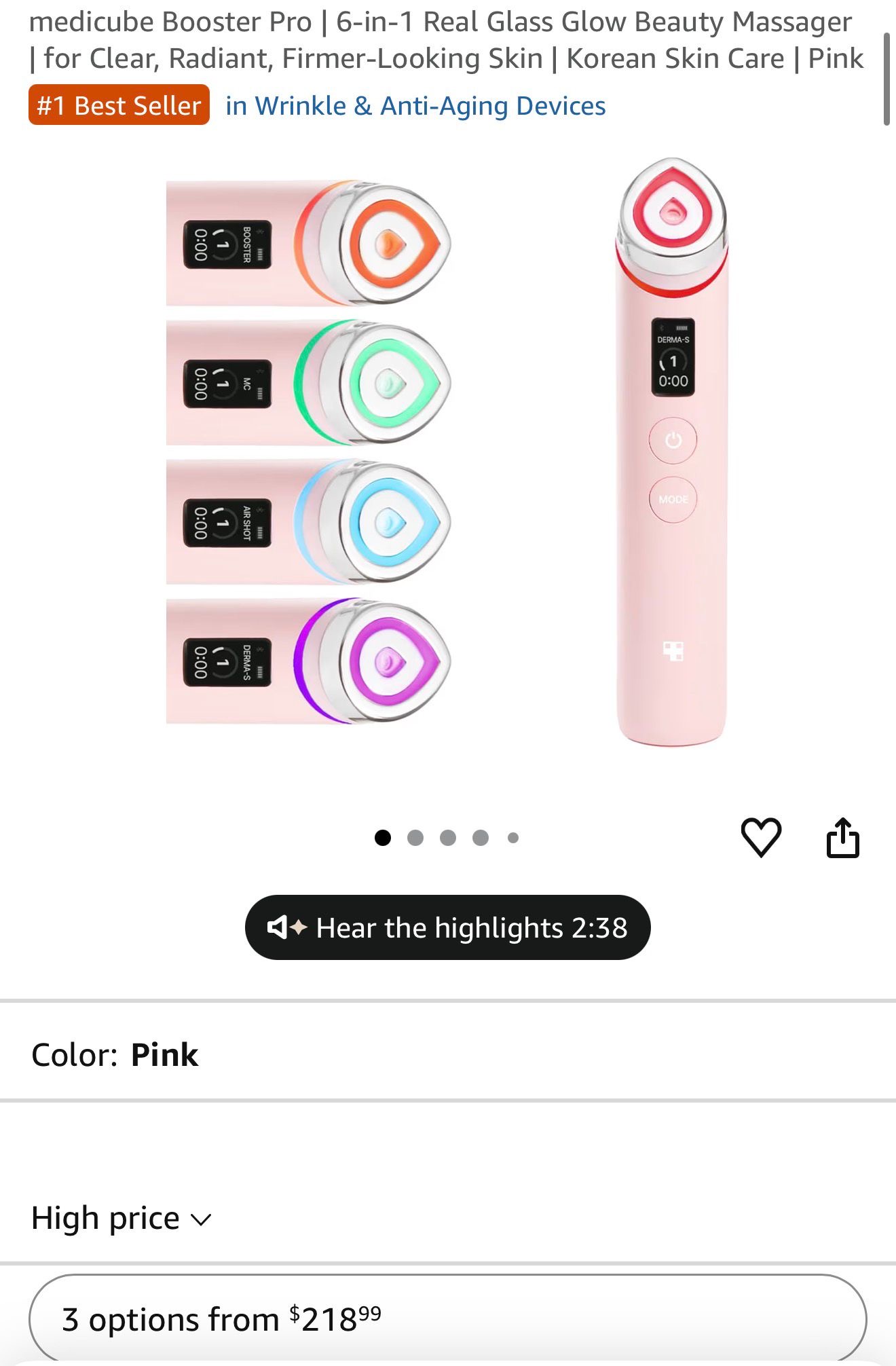 Medicube Age-R Booster Pro in pink, a 6-in-1 facial beauty device designed for skin radiance and firmness. (N11)