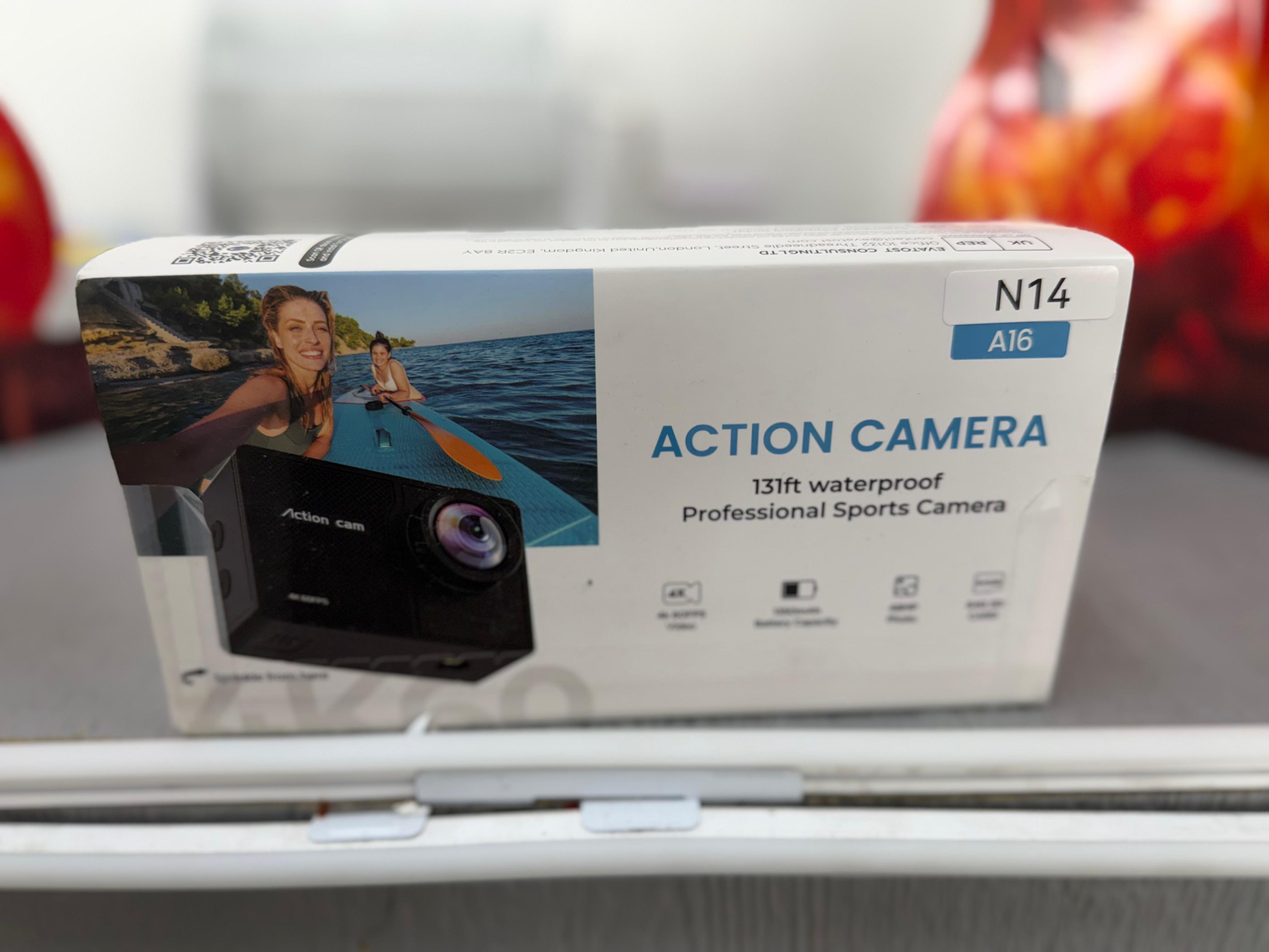 TIMNUT 4K 60FPS Action Camera, which includes a waterproof housing, a 64GB SD card, and accessory kits.( N14)