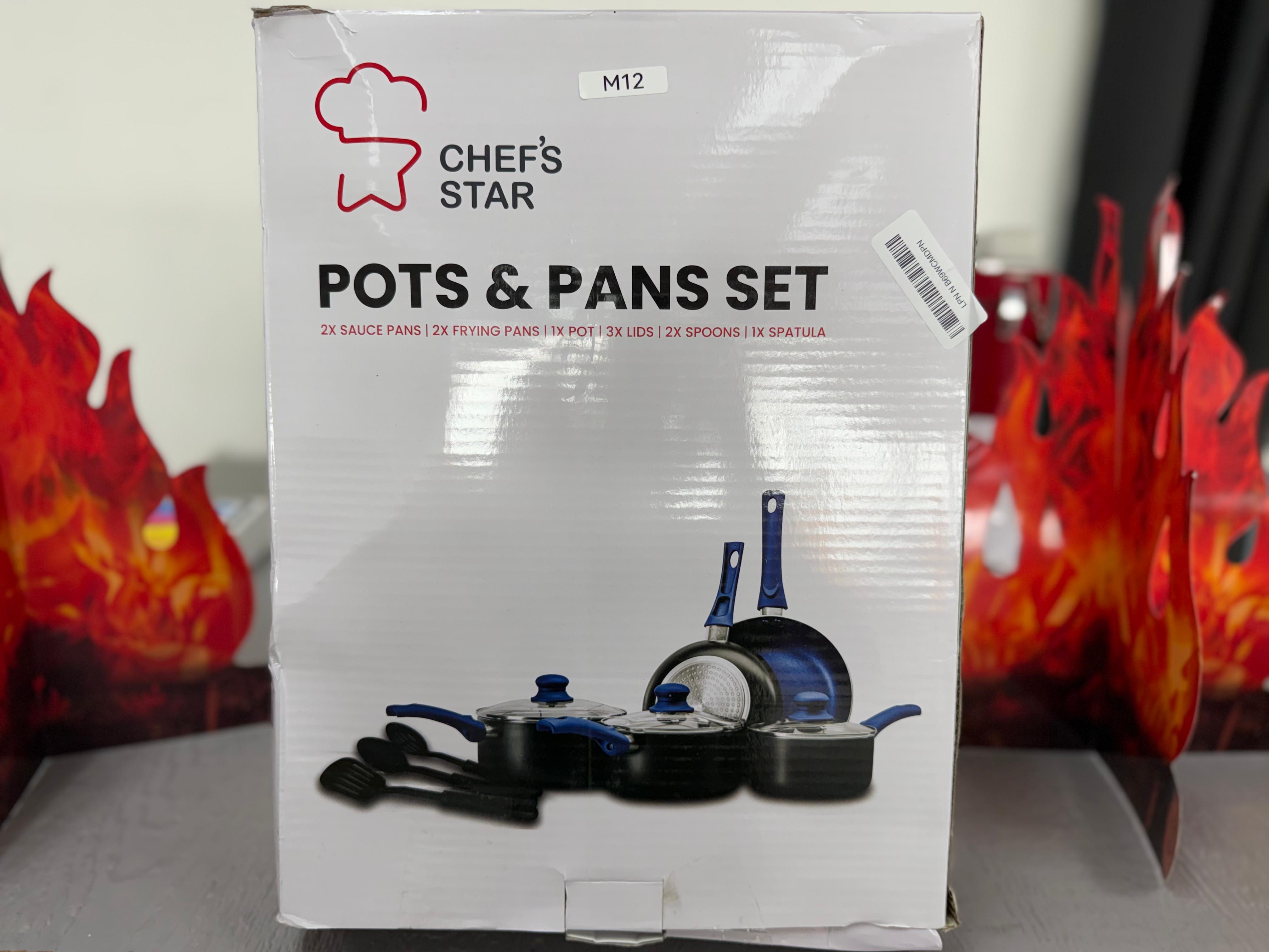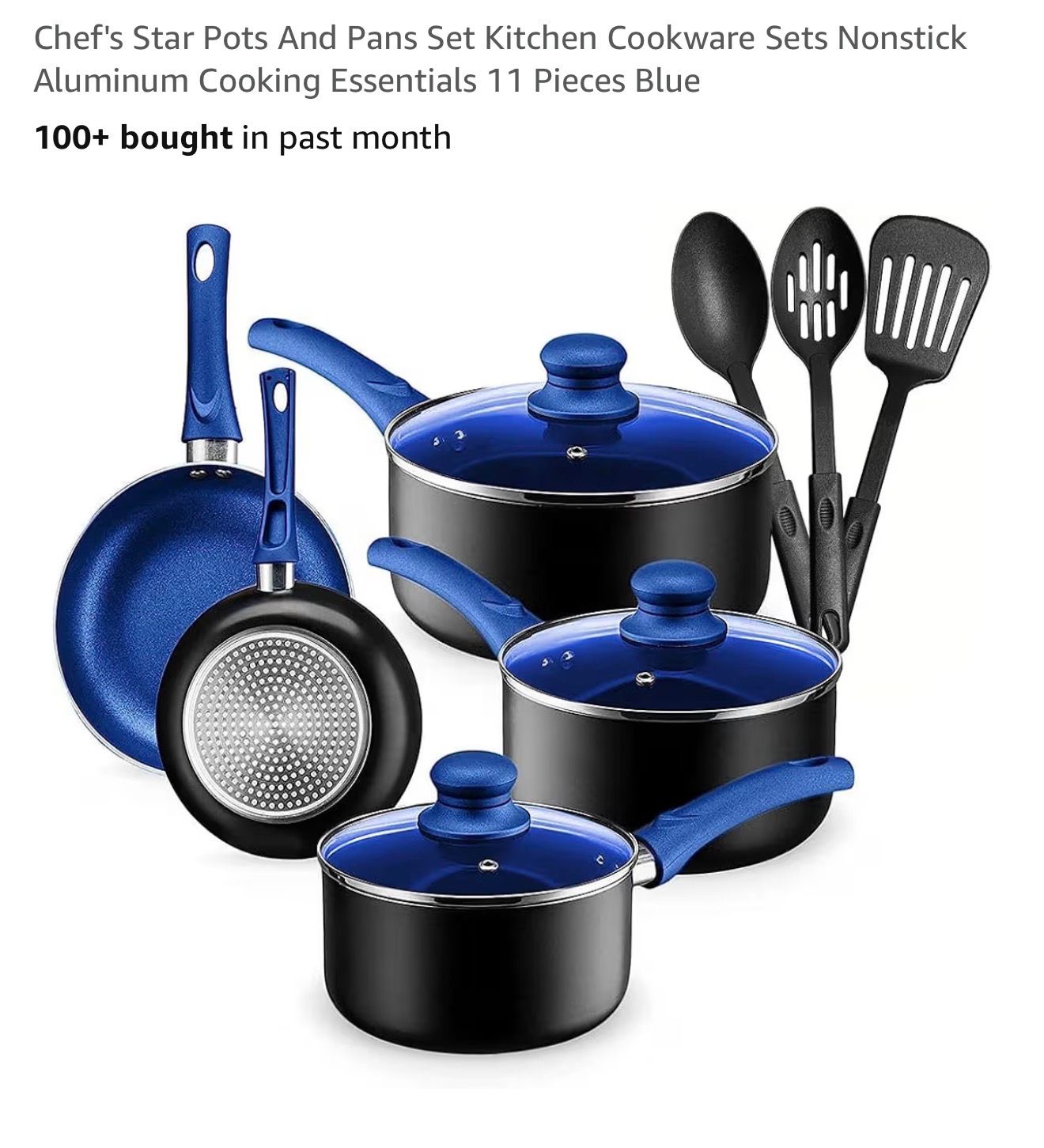 Chef's Star 11-Piece Non Stick Aluminum Kitchen Cookware Set in blue.( M12)