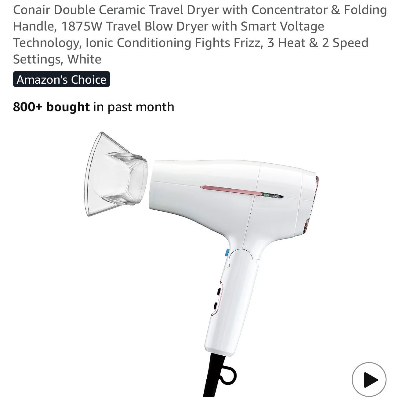 Conair Double Ceramic Travel Hair Dryer with a folding handle( Q20)
