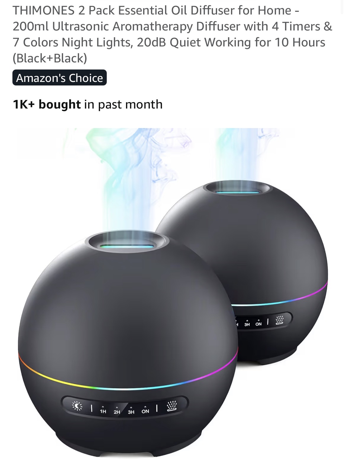 THIMONES 2 Pack Essential Oil Diffuser for Home #D132
