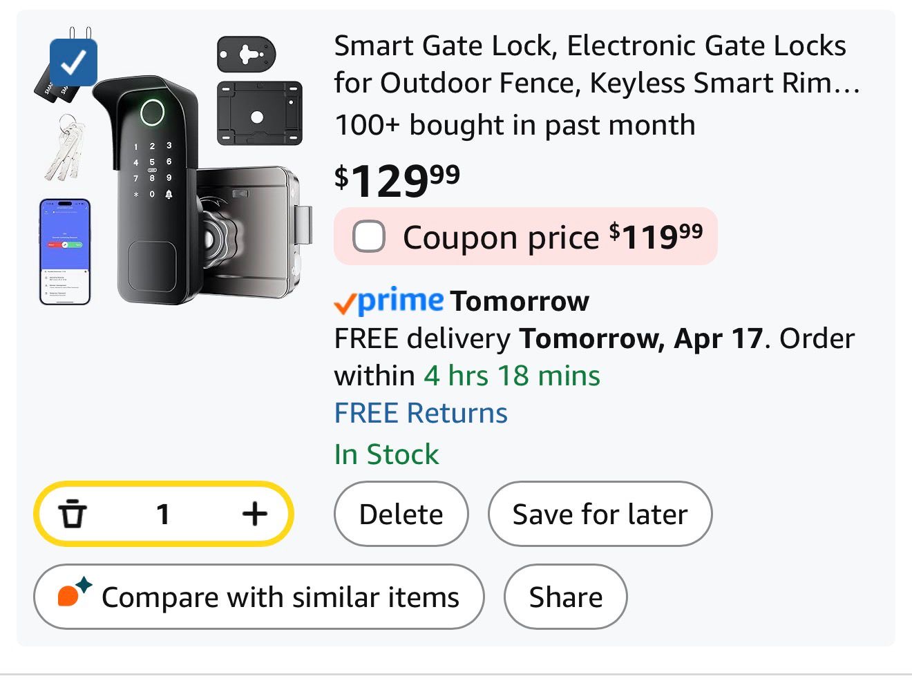 Tuya Smart Rim Lock designed for outdoor gates and fences, utilizing WiFi connectivity for remote control via app( P12)