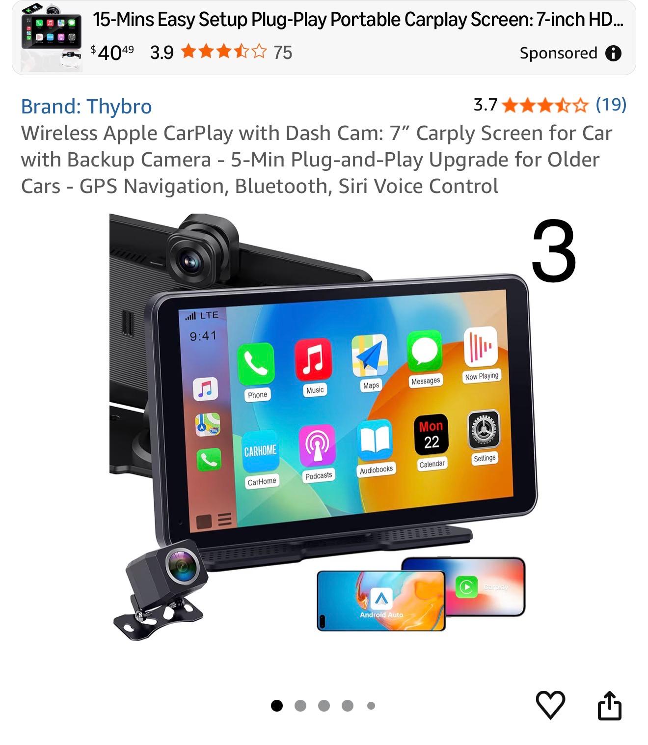 Wireless Apple CarPlay with Dash Cam: 7" Carply Screen for Car with Backup Camera - 5-Min Plug-and-Play Upgrade for Older Cars - GPS Navigation, Bluetooth, Siri Voice Control. 3