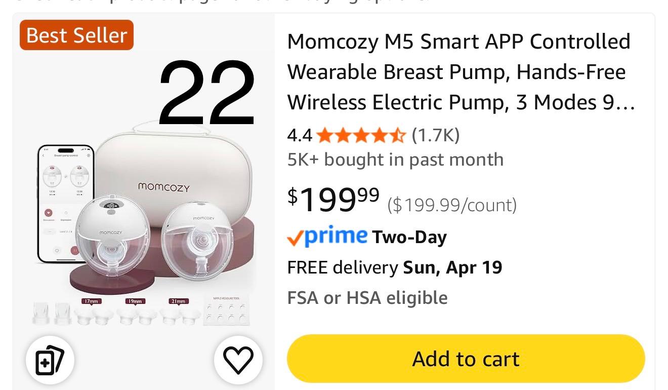 Momcozy M5 Smart APP Controlled Wearable Breast Pump, Hands-Free Wireless Electric Pump, 3 Modes 9... 22