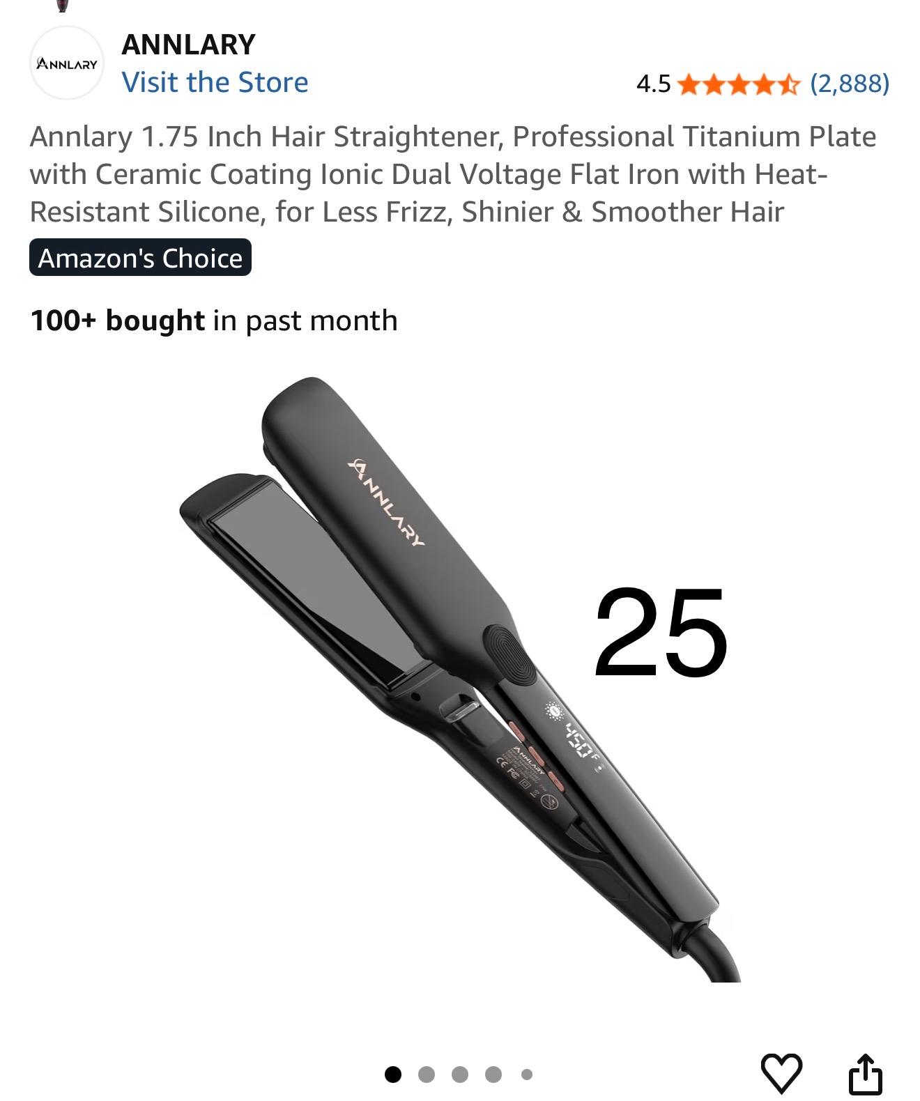 Annlary 1.75 Inch Hair Straightener, Professional Titanium Plate with Ceramic Coating lonic Dual Voltage Flat Iron with Heat-Resistant Silicone, for Less Frizz, Shinier & Smoother Hair. 25