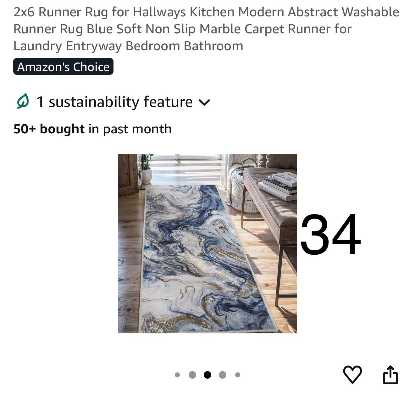 2x6 Runner Rug for Hallways Kitchen Modern Abstract Washable Runner Rug Blue Soft Non Slip Marble Carpet Runner for Laundry Entryway Bedroom Bathroom. 34