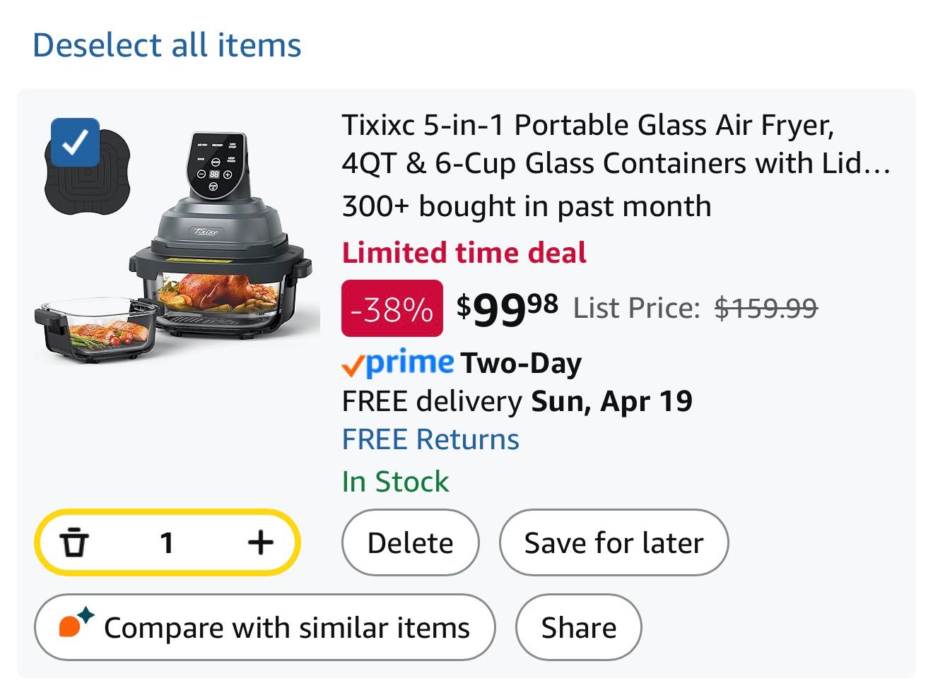 Tixixc 5-in-1 Portable Glass Air Fryer is a kitchen appliance currently featured on a limited-time deal.( T7)