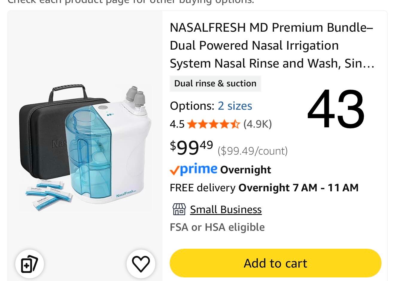 NASALFRESH MD Premium Bundle-Dual Powered Nasal Irrigation System Nasal Rinse and Wash, Sin... 43