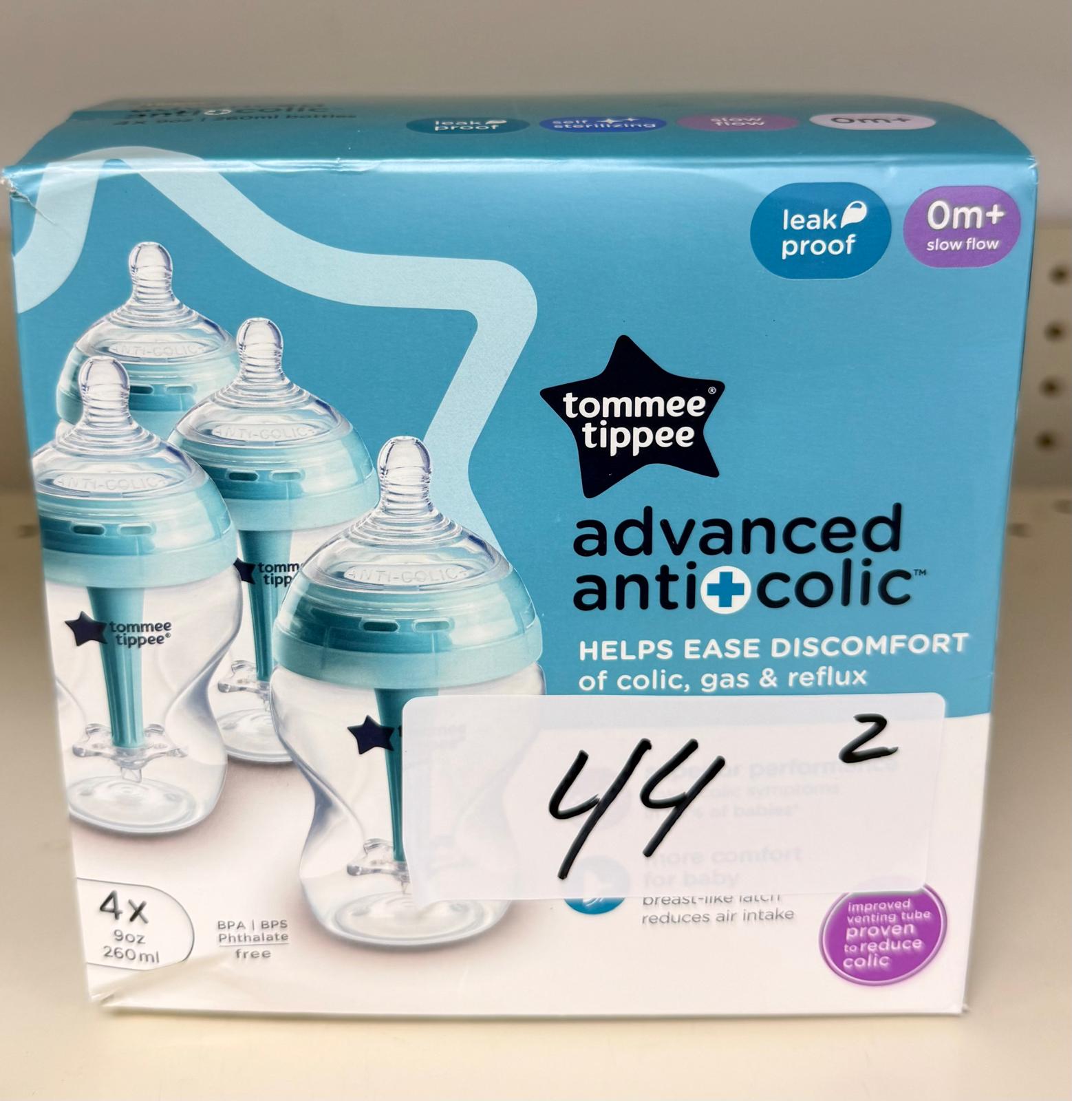 Tommee Tippee Advanced Anti-Colic 9 Oz BPA Free Baby Bottles, Newborn 0+ Months, Slow Flow Breast-Like Nipple, Unique Design Keeps Air Away from Milk and Baby, Clear, Pack of 4. 44