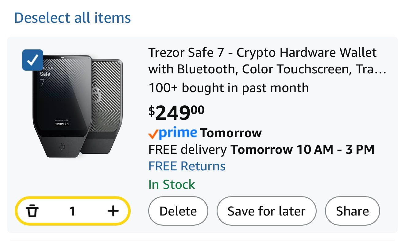 Trezor Safe 7 crypto hardware wallet.( R15)
