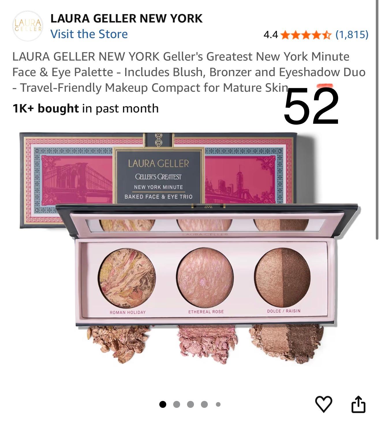 LAURA GELLER NEW YORK Geller's Greatest New York Minute Face & Eye Palette - Includes Blush, Bronzer and Eyeshadow Duo - Travel-Friendly Makeup Compact for Mature Skin. 52