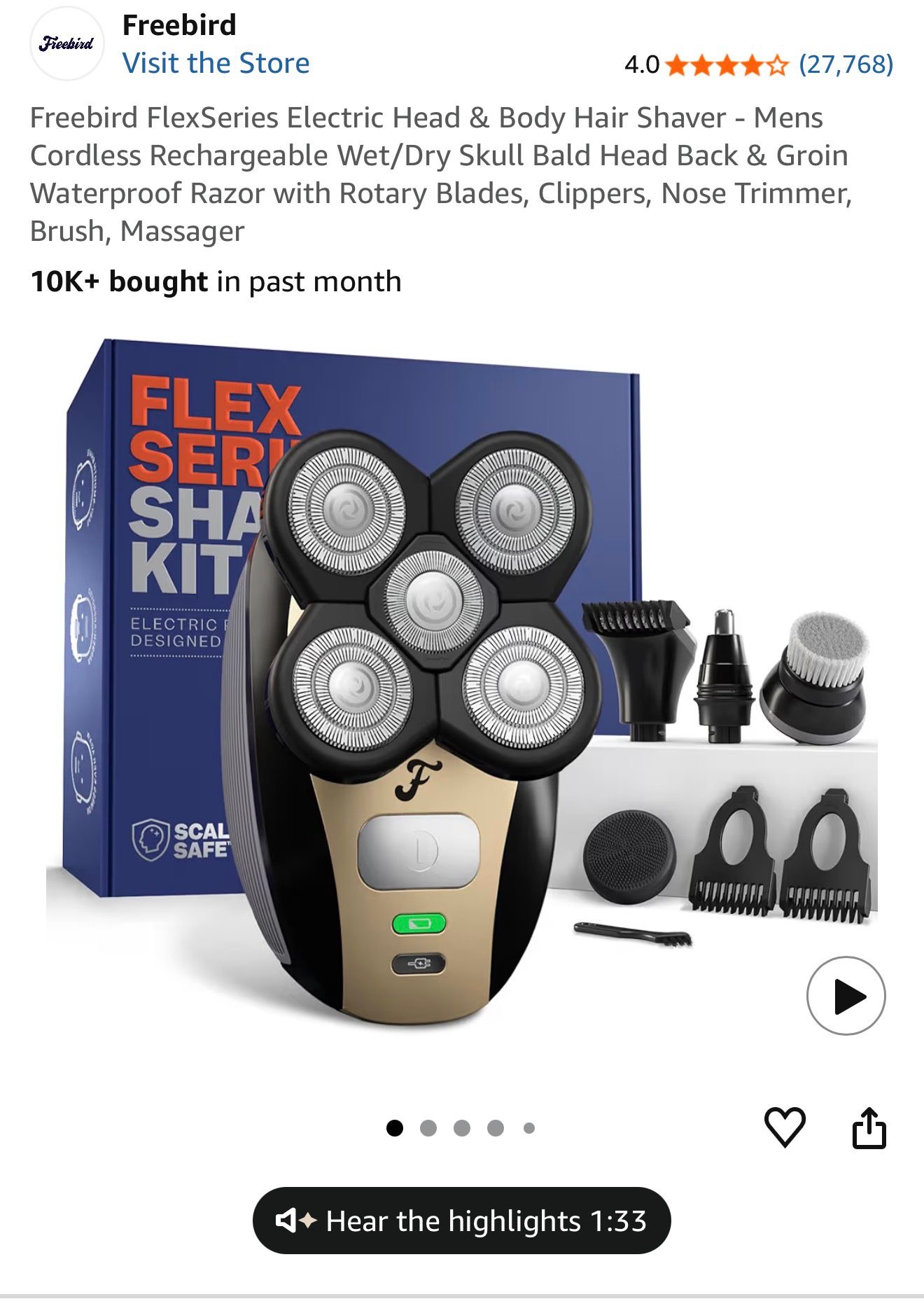 Freebird FlexSeries Electric Head & Body Hair Shaver, a multifunctional grooming kit designed for men. (T20)