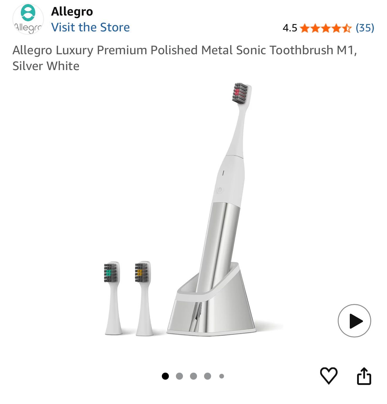 Allegro Luxury Premium Polished Metal Sonic Toothbrush M1 in Silver White. (T3)