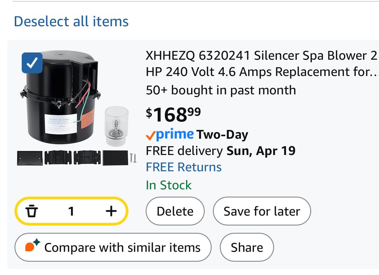 Air Supply Silencer Spa Blower, designed to produce air bubbles for hot tubs and spas. (T11)