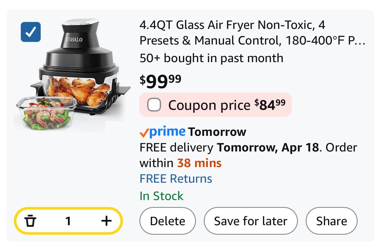 Ushalo 4.4QT Glass Air Fryer.(T12)