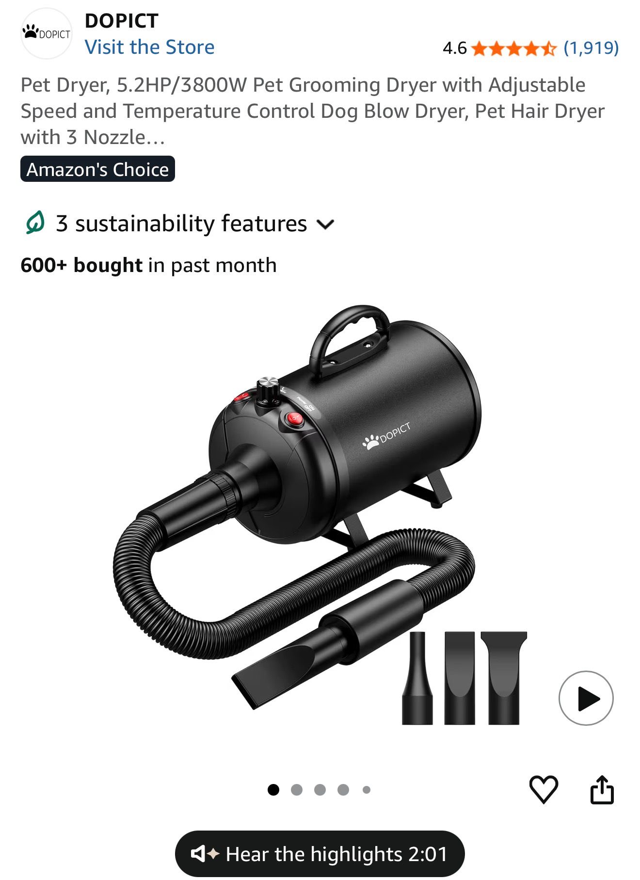 Dopict Pet Hair Dryer (model CL-1999), designed for professional-grade grooming at home. (R17)