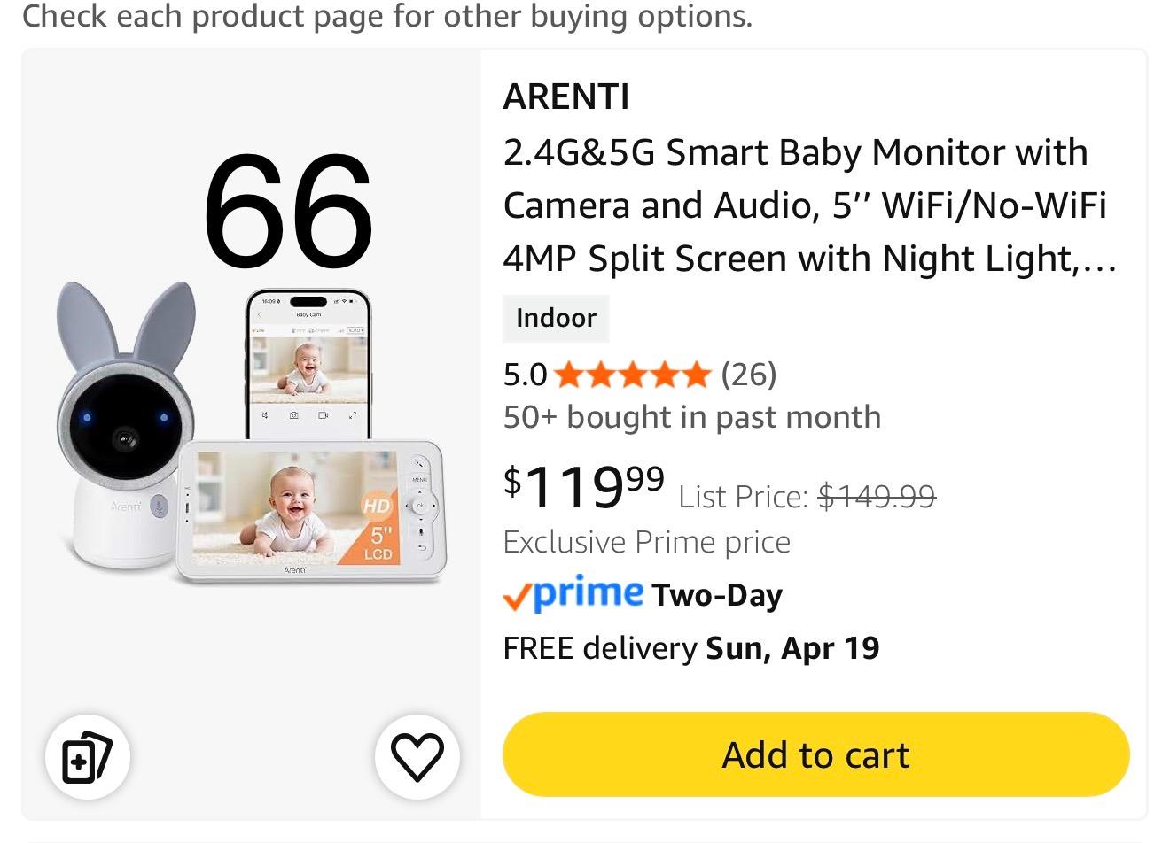 ARENTI 2.4G&5G Smart Baby Monitor with Camera and Audio, 5" WiFi/No-WiFi 4MP Split Screen with Night Light,... 66