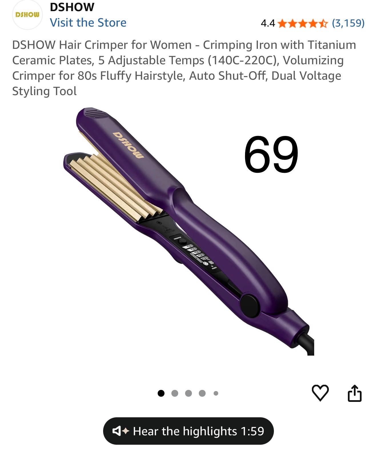 DSHOW Hair Crimper for Women - Crimping Iron with Titanium Ceramic Plates, 5 Adjustable Temps (140C-220C), Volumizing Crimper for 80s Fluffy Hairstyle, Auto Shut-Off, Dual Voltage Styling Tool. 69
