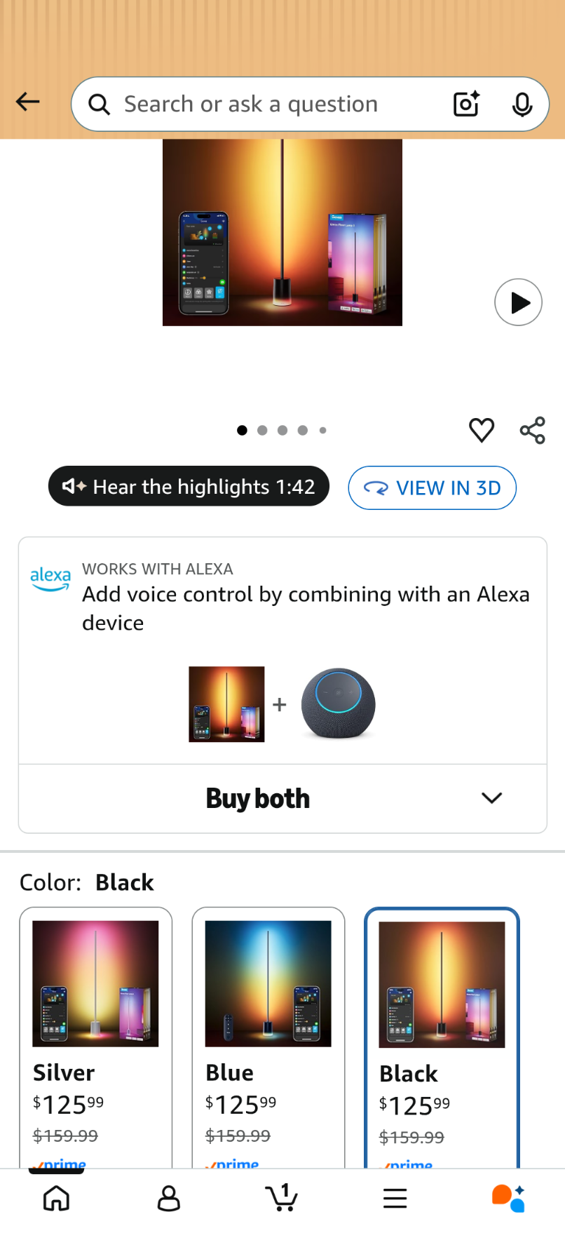 A04 Govee Floor Lamp 2, RGBIC, Warm Cool White LED, Compatible with SmartThings, Matter, Alexa, 1725lm, Music Sync, Scene Modes, Smart Floor Lamp for Living Room, Bedroom, Black(1 Pack