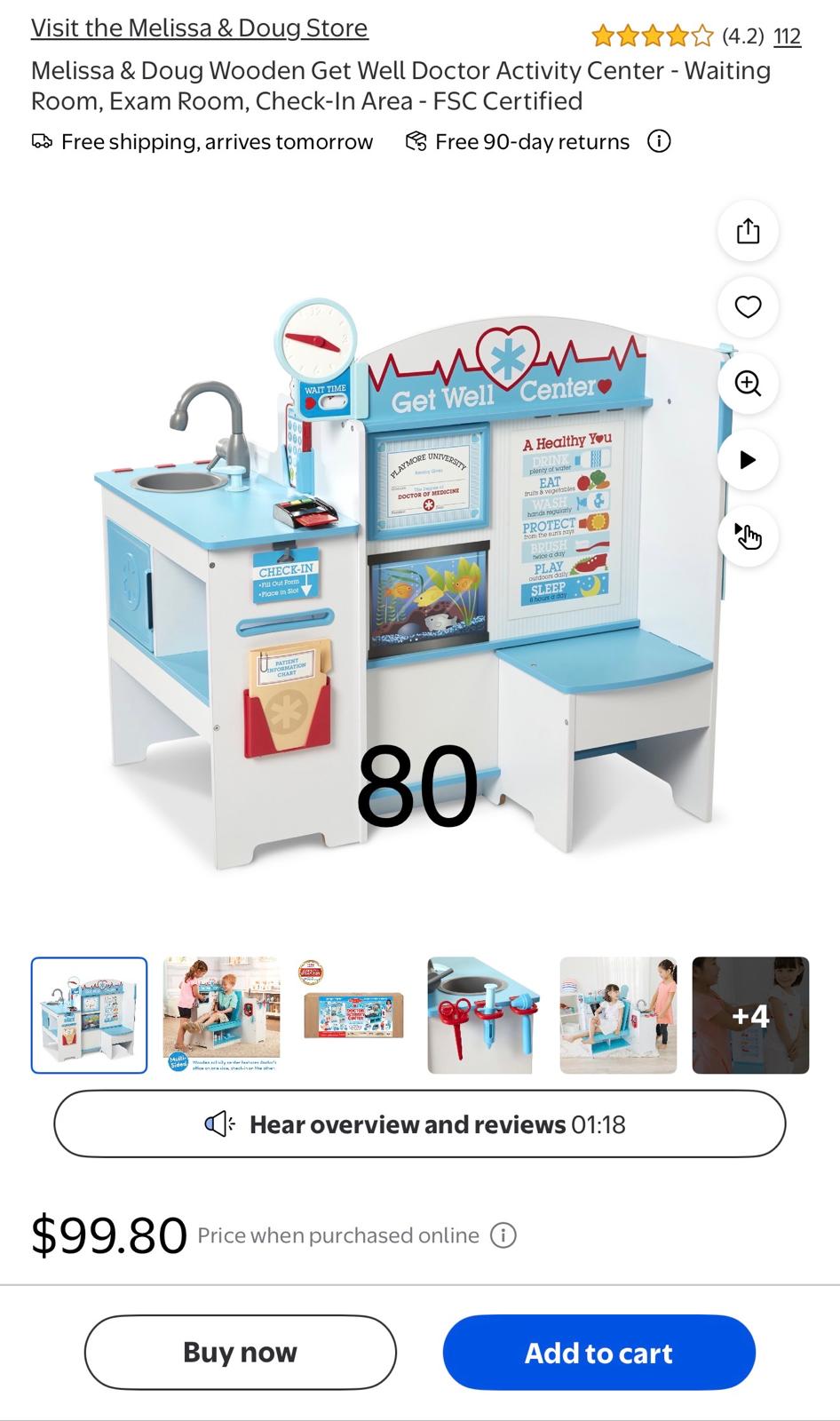 Melissa & Doug Wooden Get Well Doctor Activity Center - Waiting Room, Exam Room, Check-In Area - FSC Certified. 80
