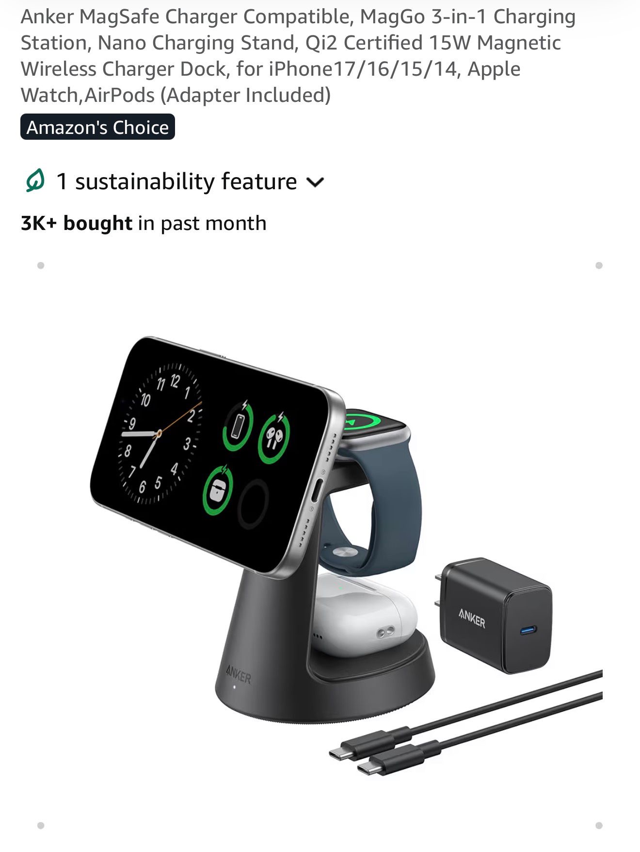 Anker MagGo 3-in-1 Charging Station, a Qi2-certified wireless dock. (N10)