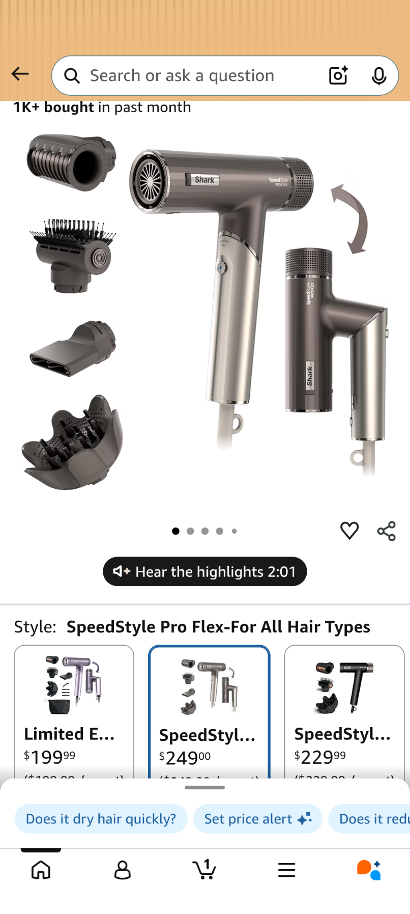 A010 Shark SpeedStyle Pro Flex Professional Performance High-Velocity Hair Dryer System with Scalp Shield & IQ Speed Styling and Drying Suite, Lightweight, Ionic, No Heat Damage, Mocha Silver, HD542