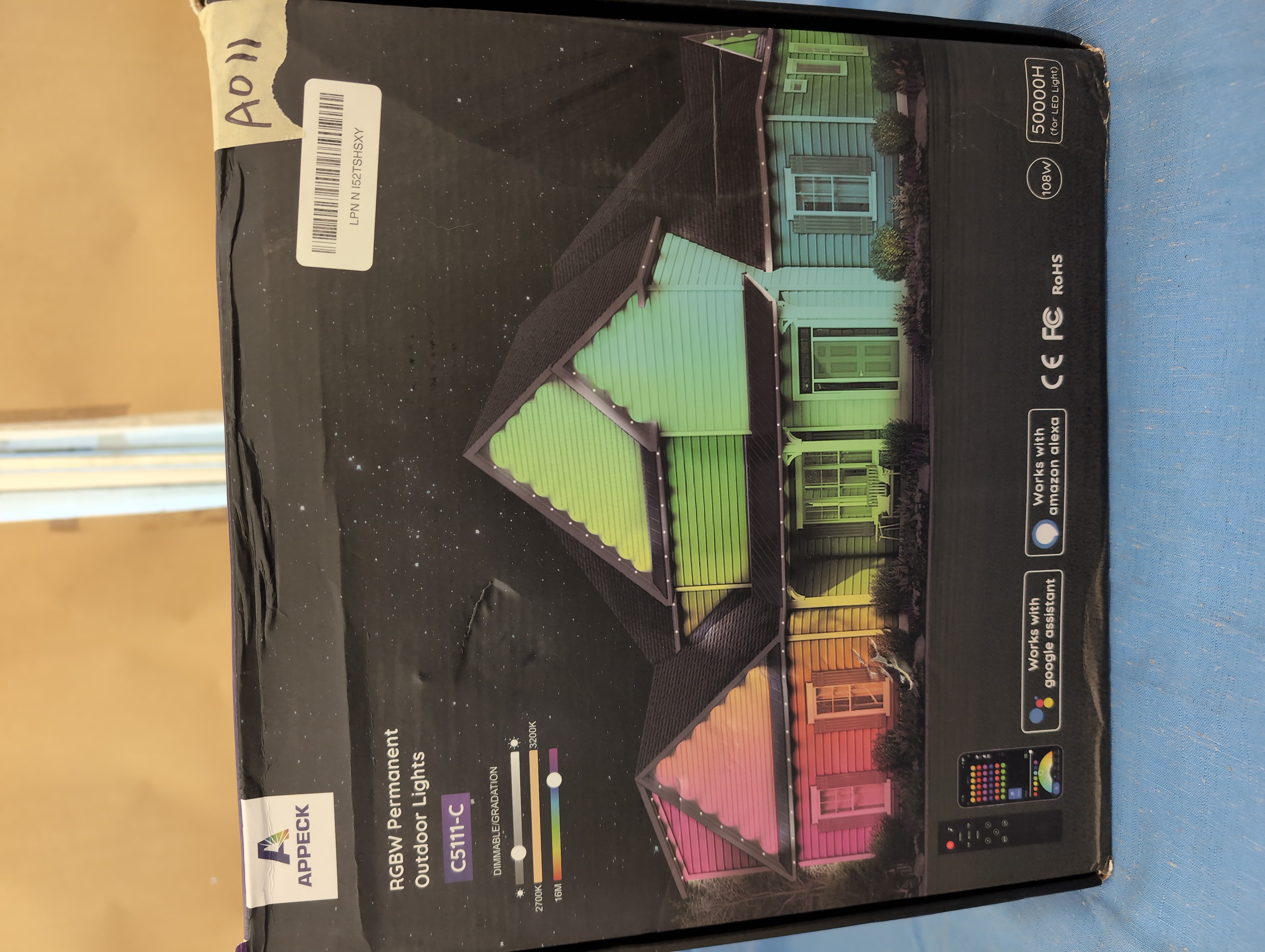 A011 APPECK Permanent Outdoor Lights 300ft with 216 LED Lights, 108W Smart RGBW Eaves Lights, DC 36V, 40LM, IP67 Waterproof String Lights for Halloween Christmas Decor, Compatible with Alexa, White