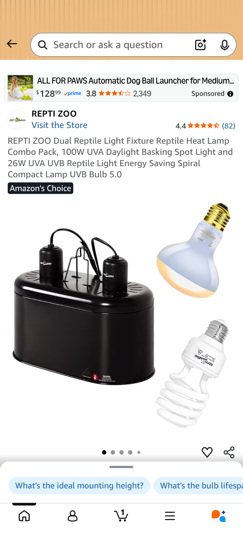 A015 REPTI ZOO Dual Reptile Light Fixture Reptile Heat Lamp Combo Pack, 100W UVA Daylight Basking Spot Light and 26W UVA UVB Reptile Light Energy Saving Spiral Compact Lamp UVB Bulb 5.0